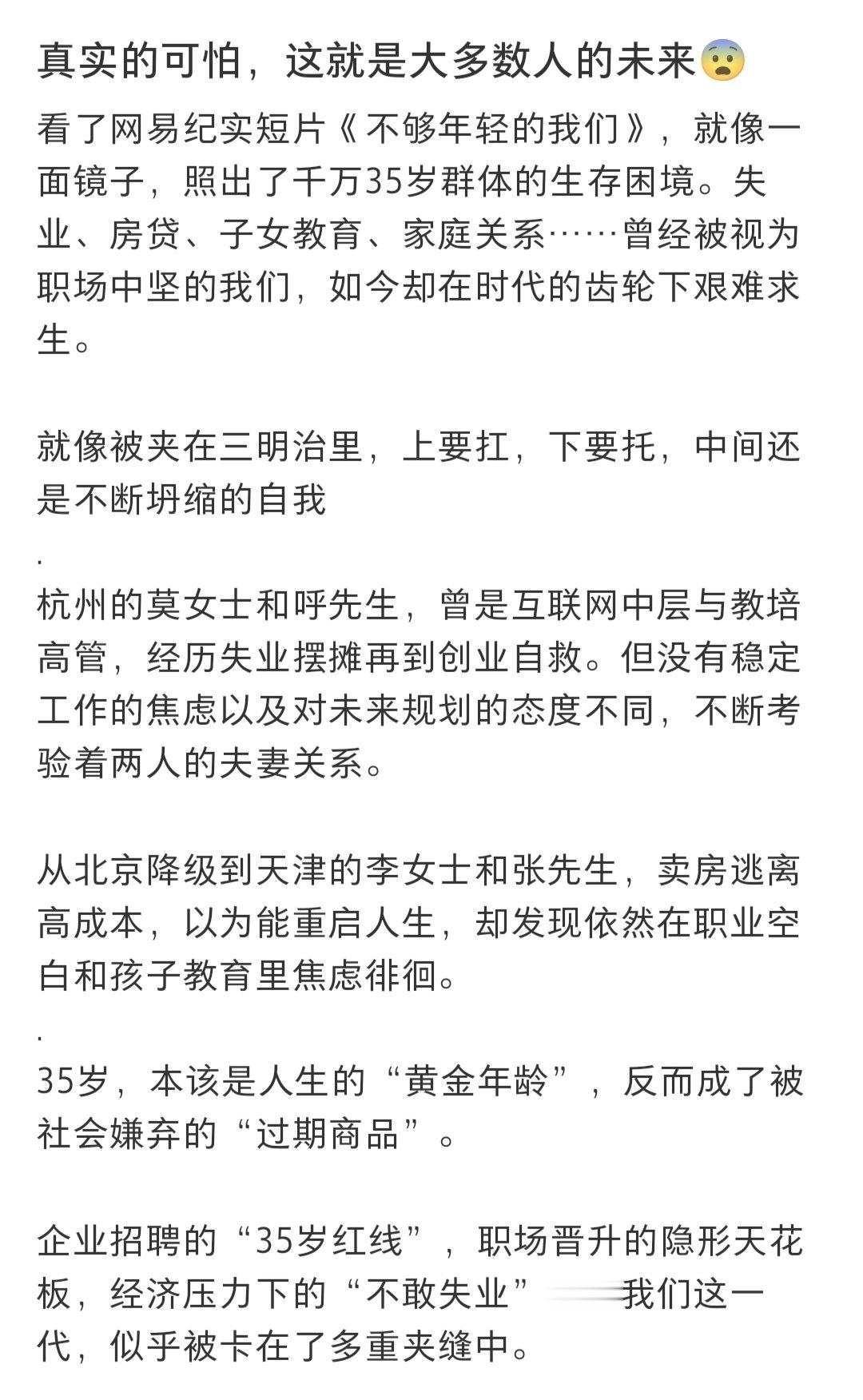 原来35岁那么刀人 看完人都要破防了,失业压力好大,房贷车贷柴米油盐压得人喘不过气。上很好的大学也没过上幸福人生 失业夫妻哪有不吵架的