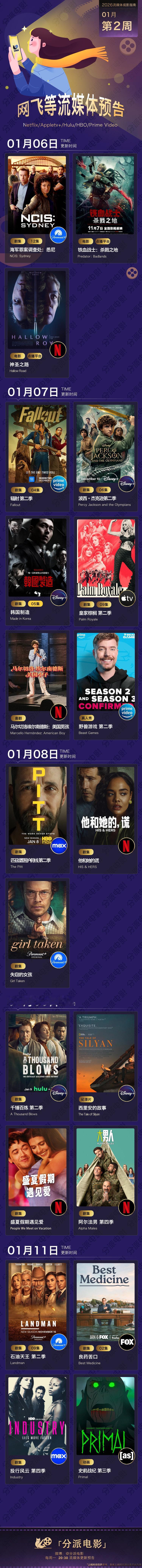 网飞一周流媒体更新预告 1月第2周Netflix/HBO/AppleTV等热门更新内容:《铁血战士:杀戮之地》、高分医疗热剧《匹兹堡医护前线第二季》、Netflix爱情喜剧《盛夏假期遇见爱》、乔博恩瑟/泰莎汤普森惊悚犯罪剧《他和她的谎》、HBO剧集《投行风云第四季》、《史前战纪第三季》,看看哪部你最期待?