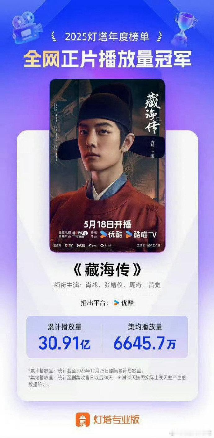 藏海传播放量年度top1藏海传三榜播放量年冠恭喜藏海传达成云合 灯塔 猫眼 三榜播放量年冠!