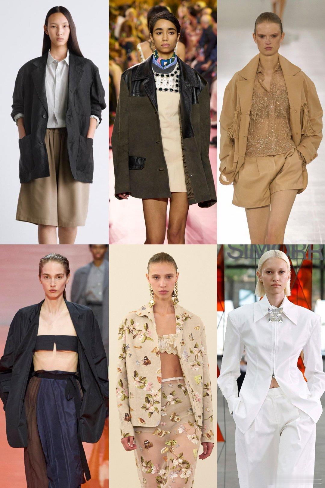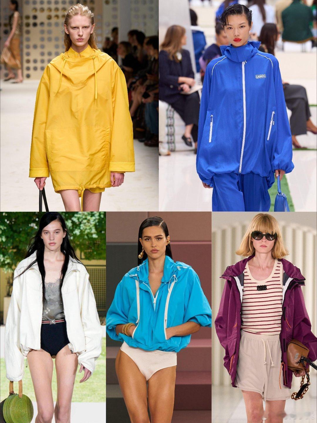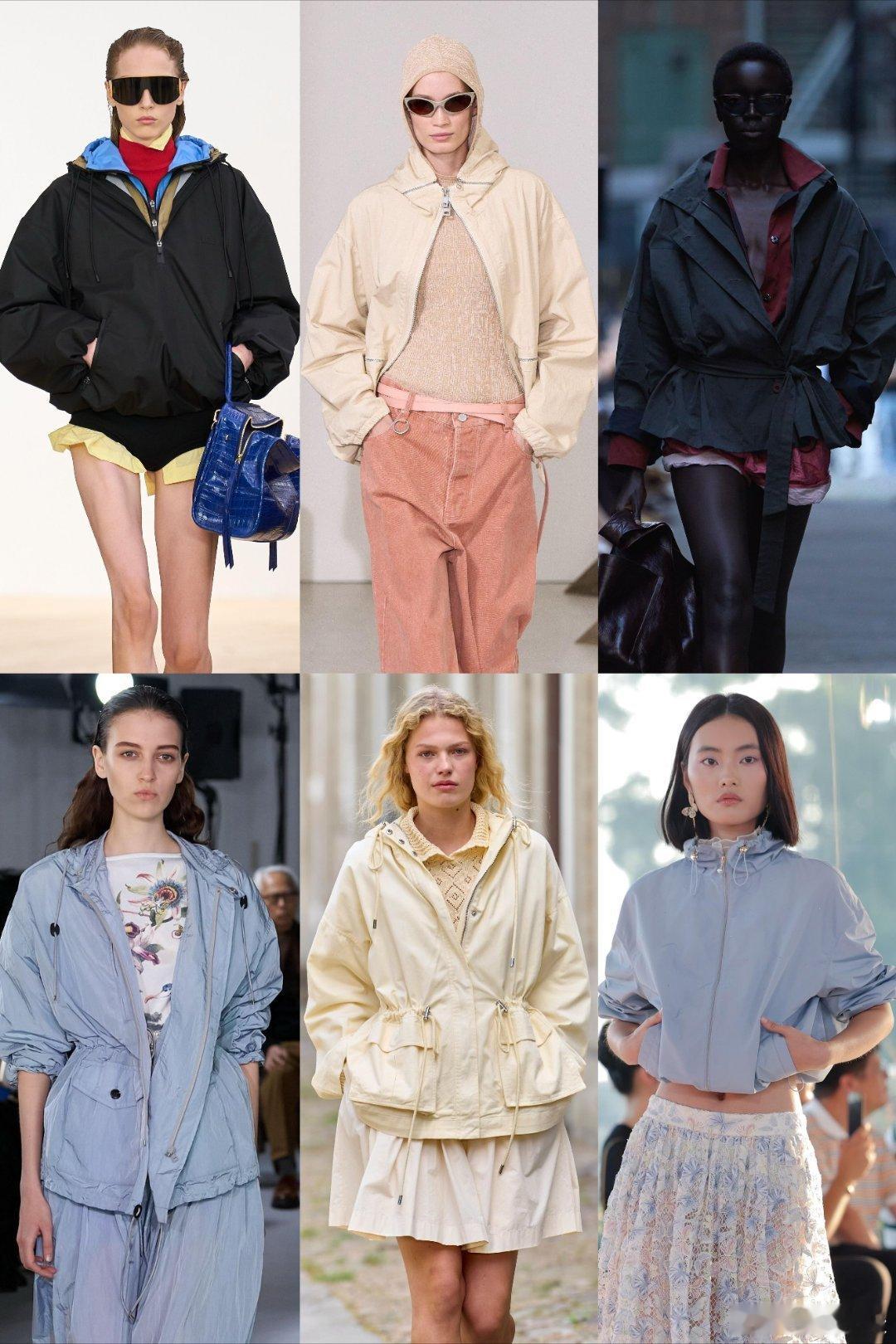 2027春夏女装夹克:都市户外风六大趋势引领潮流风格大赏都市户外风2027春夏,女士夹克已超越传统功能性,成为定义都市风格、连接多元场景的关键单品。本季在轻盈体感、多功能与精致美学间寻得平衡,呈现六大趋势。径量连帽防风夹克主打都市轻量美学,超轻面料与简化设计,摒弃厚重,便携舒适,柔和大地色系搭配微妙装饰,可无缝融入日常穿搭。现代街感飞行夹克是轻盈化的复古符号。经典飞行夹克摆脱硬朗军事风,轻量尼龙、半透明纱等创新材质,简化轮廓,营造飘逸轻薄感,双向拉链、色块拼接等细节注入现代街头气息。都市风猎装夹克是功能结构的都市进化。源于户外猎装,经城市化改造,多口袋布局扁平利落,挺括面料搭配通道式抽绳优化腰身,适配城市通勤与轻户外场景。轻简衬衫夹克是跨季的柔性层次单品。作为衬衫与外套过渡,版型宽松适度,面料亲肤挺括,去除冗余装饰,精良剪裁与细节使其成为应对温差、打造层次感首选。复古运动夹克是怀旧基因的新鲜表达。以80 - 90年代经典运动服为蓝本,修身利落廓形,轻亮梭织面料,时装化色彩组合,兼具运动活力与都市精致。洋裁结构夹克呈现精致化的几何轮廓。融合西装剪裁工艺与夹克休闲感,立体剪裁塑造清晰肩线与腰身,对比面料与创新材质,满足都市女性对个性与精致的追求。
