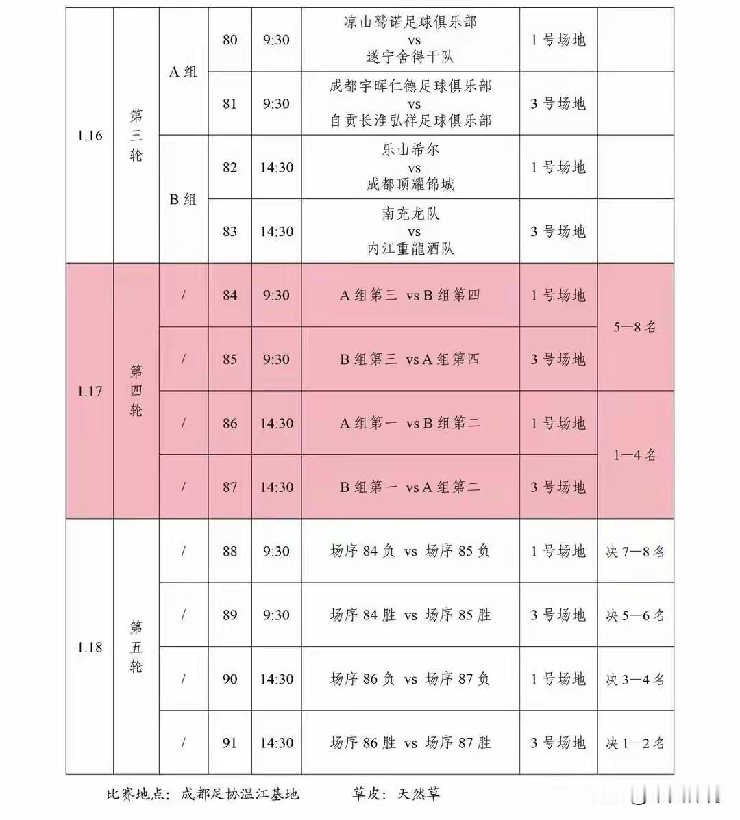 四川三大球暨巴蜀雄起杯足球联赛第二阶段的比赛将在元月十四号重燃战火! 根据四川省足球协会的最新安排,因自贡长淮与宜宾乐星在川南赛区最后一轮中发生打人事件,被紧急叫停的巴蜀雄起杯,将于1月14日恢复,在第一阶段顺利出线的8支球队将分成两个小组,在成都进行单循环比赛,决出四强!随后进行排位赛,直至最终决出冠军! 其中,成都宇晖仁德、遂宁舍得干、凉山鹫诺和自贡长淮分在A组!乐山希尔、内江重龙酒、成都顶耀锦城和南充龙队分在B组! 预测四强是:成都宇晖仁德、自贡长淮、成都顶耀锦城和南充龙队!你心目中的四强是哪四支?