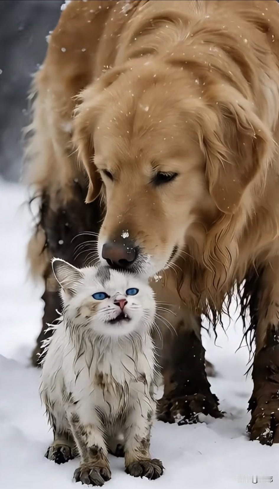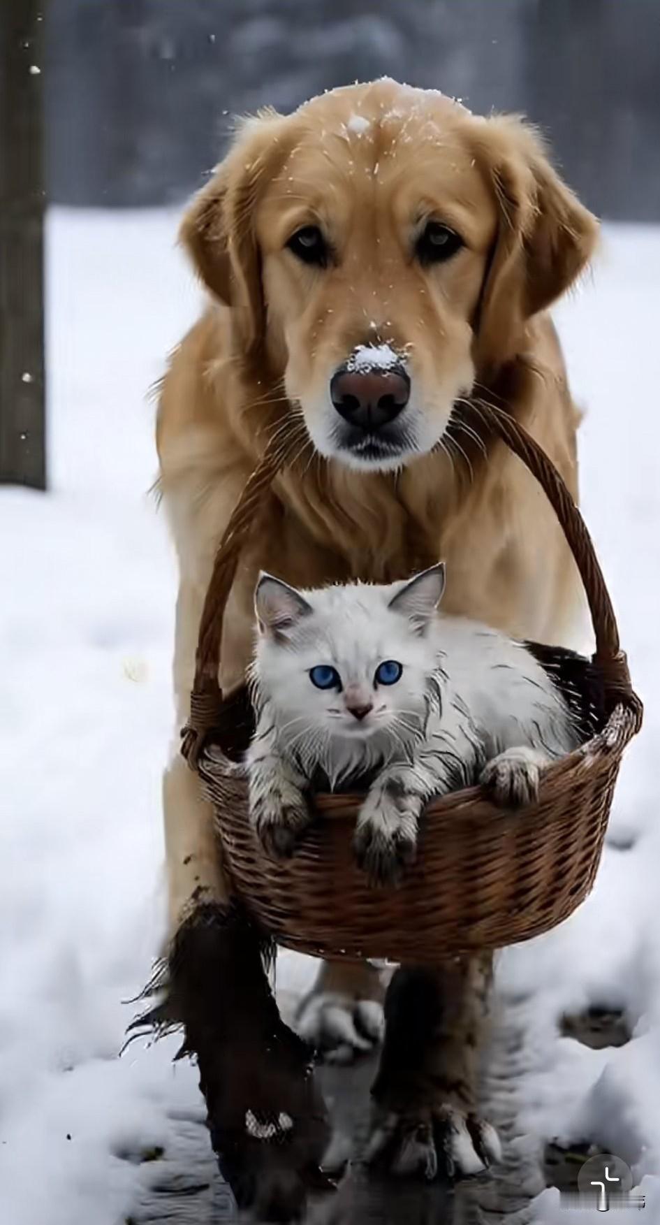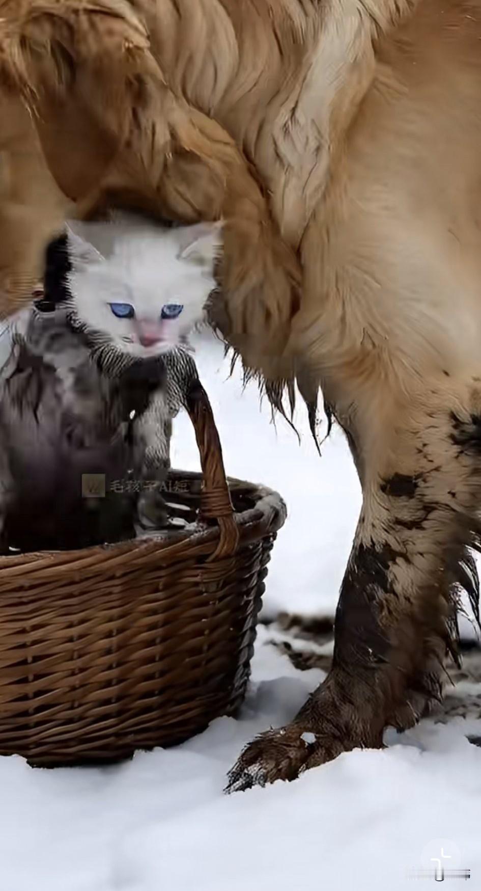太坏了!这天一个女人居然把自己的猫咪丢弃在了马路上,而且是从行驶的车上丢下去的,幸好小猫掉在了一堆雪上,才没有受伤,可四处都是冰天雪地,非常寒冷,它很快冻的瑟瑟发抖,它很委屈很难过,不知主人为何这样对它,它委屈的哀嚎着。 希望引起好心人的注意,可路过的车辆根本没有一辆停下来,甚至还有车把水溅在它的身上。就在它快冻晕过去的时候,一只狗狗发现了它,跑了过来闻了闻它,然后就跑走了,小猫以为它也不管自己,结果狗狗去别人那叼了一个篮子过来,然后把小猫放到篮子里,然后叼着篮子回到了它的家,它的主人是一位善良的老奶奶,狗狗也是之前被她收养的。最终老奶奶把小猫洗干净以后,还弄了好吃的喂它吃,相信在老奶奶的照顾下,狗狗和小猫都能过上幸福的日子。