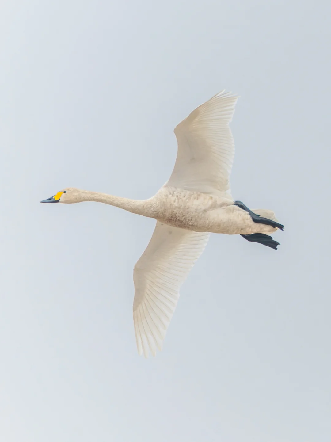 小天鹅在天鹅里体型较小,以优雅的长颈和全白色的羽毛著称。不过幼鸟是灰褐色调,特别是头部和上颈,嘴是灰色带粉色,逐渐变黑,如p2 p6。和大天鹅相比,小天鹅嘴基部的黄色斑不会延伸至鼻孔下方。