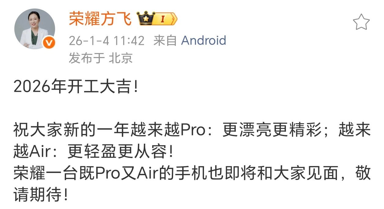 哦吼,荣耀Magic8 RSR的小尾巴也出现了,曹工把它亮出来了。是不是,春节前会登场。阿耀在春节前,除了今晚的充电宝,还有另外两款新机?昨天方总也透露了还有个Pro又Air的,这个应该还不是RSR。这波Magic8系列也是更全乎了。新机来了