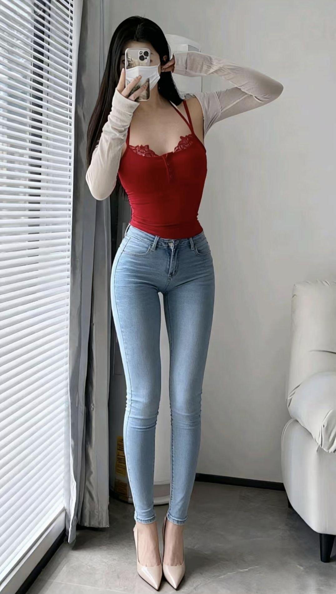 窗畔的光影揉碎在红吊带的明艳里,牛仔与高跟鞋撞出随性的性感,口罩遮不住的,是藏在细节里的风情。日常的穿搭小小心机,把平凡的瞬间也衬得鲜活起来,红与蓝的碰撞,是独属于自己的时尚节奏。
