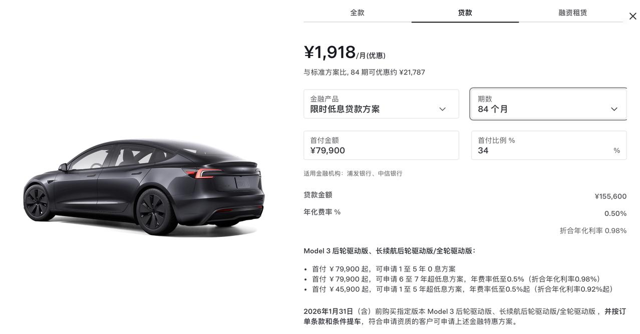 特斯拉中国首次推出7年超低利息购车活动,Model3/Y/YL都支持 还是