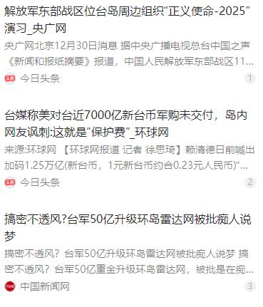 特朗普估计现在很发愁,因为售台这批110亿美元的武器可能完不成了,运输都成问题了。能够把台湾围起来了,演习重点强化反潜科目和外线立体慑阻能力,构建起严密的立体监控体系,有效遏制外部势力水下干涉企图,围得跟铁桶似的,这批武器怎么运往台湾?   麻烦看官老爷们右上角点击一下“关注”,既方便您进行讨论和分享,又能给您带来更多优质的内容,感谢您的支持!   2025 年 12 月 17 日,美国国务院正式批准向中国台湾地区出售包含 “海马斯” 火箭炮、陆军战术导弹系统、反坦克导弹和无人机在内的八项军备,短短一个多月前,美方刚批准过一笔 3.3 亿美元的对台军售,这种密集投放的节奏,明显是想加速武装台湾。赖清德当局当时还忙着感恩戴德,声称这彰显了 “台美紧密合作”,却没多想,这笔花了台湾民众血汗钱的订单,可能压根就落不了地。   问题的核心症结,就出在台湾周边的运输通道上。就在军售获批后没多久,2025 年 11 月 29 日起,中国人民解放军东部战区在台湾海峡、台岛北部、西南、东南及以东等多个区域,开展了代号 “正义使命 - 2025” 的联合演习。   这次演习可不是走过场,陆军、海军、空军、火箭军等多兵种齐上阵,实弹射击覆盖台岛周边关键海域,舰机多向抵近台岛,形成了全方位的立体包围圈。更关键的是,演习重点强化了反潜和外线立体慑阻能力,正好掐住了美军可能的运输路径 —— 不管是水面舰艇还是水下潜艇,想偷偷把武器运进台湾,都得先过解放军这一关。   解放军这几年一直在完善台海周边的监控和封控体系,这次演习更是把这套体系的威力展现得淋漓尽致。海军编队在台岛周边开展联合反潜、对海实弹射击,空军多型战机组成大规模编队,在台岛周边实施空中破限进逼,火箭军则依托全维一体火力打击体系,对海上和陆上目标实施模拟突击,陆军远箱火分队也完成了连续模拟打击演练。   这种多域联动的作战模式,构建起了覆盖海空域的多层联动立体监控网,别说大型运输船,就算是小型舰艇想搞小动作,也能被实时捕捉。东部战区新闻发言人施毅陆军大校明确表示,演习就是要检验要港要域封控、外线立体慑阻等实战能力,警告 “台独” 分裂势力和外部干涉势力。   其实美国对台军售交付拖延早就不是新鲜事了,只是这次 110 多亿美元的大单,把这个问题放大到了极致。根据台媒援引《日经亚洲》的报道,截至 2025 年 10 月,美国已核准但未交付的对台军售总额已经突破 215 亿美元,接近台湾 2026 年防务预算的七成。   美方一直对外宣称是供应链紧张、国防工业产能不足导致的,说什么主要承包商从 1990 年的 50 家锐减到现在的 5 家,25 种主要武器系统里只有 7 种产能达标。但明眼人都清楚,真正的原因是台海封控态势下,运输风险实在太高,美方根本不敢强行运送。之前 66 架 F-16V 战机就被推迟到 2027 年甚至 2028 年交付,2017 年就该交付的空对地导弹系统,更是要拖到 2027 年以后,这些都印证了美方的底气不足。   现在特朗普政府面临的尴尬是,军售合同签了,军工企业的生产已经启动,可运输通道被解放军牢牢监控着,根本找不到安全的运送方式。如果选择大型货轮海运,必然会进入解放军的监控范围,一旦穿越台湾海峡或靠近台岛周边,就可能面临实弹演练的相关管控,甚至出现意外风险;   如果想用军舰护航,又等于直接介入台海局势,按照美国战略与国际问题研究中心的兵棋推演,美军航母打击群要是介入,可能会损失超过半数舰载机联队,这种代价美方承受不起;至于水下潜艇运输,这次演习重点强化的就是反潜能力,解放军的反潜编队和相关装备,早就把水下通道盯得严严实实,想偷偷摸摸运送重装备和弹药,几乎是不可能的事。   而台湾当局这边,更是陷入了 “花钱买焦虑” 的困境。赖清德当局一边喊着加码 1.25 万亿新台币的 “防务特别预算”,一边花 110 多亿美元买武器,本想靠着这些装备寻求 “安全感”,结果现在连武器能不能运到都成了未知数。   台军原本还指望把新购的 82 套 “海马斯” 系统和已有的 29 套整合,形成远程打击网络,再用 1050 枚 “标枪” 导弹和 1545 枚 “陶 - 2B” 导弹构建反装甲体系,但这些美好的设想,都因为运输问题变成了泡影。   更讽刺的是,台军自己花 50 多亿新台币升级环岛雷达网,想打造 “密不透风” 的监控体系,结果不仅存在侦搜盲区,还频繁出现故障,根本没法和解放军的立体监控网相提并论。   特朗普现在的发愁,本质上是自食其果。他想通过对台军售讨好军工复合体、掏空台湾经济、对华实施战略施压,却低估了中国人民捍卫国家主权和领土完整的决心和能力。