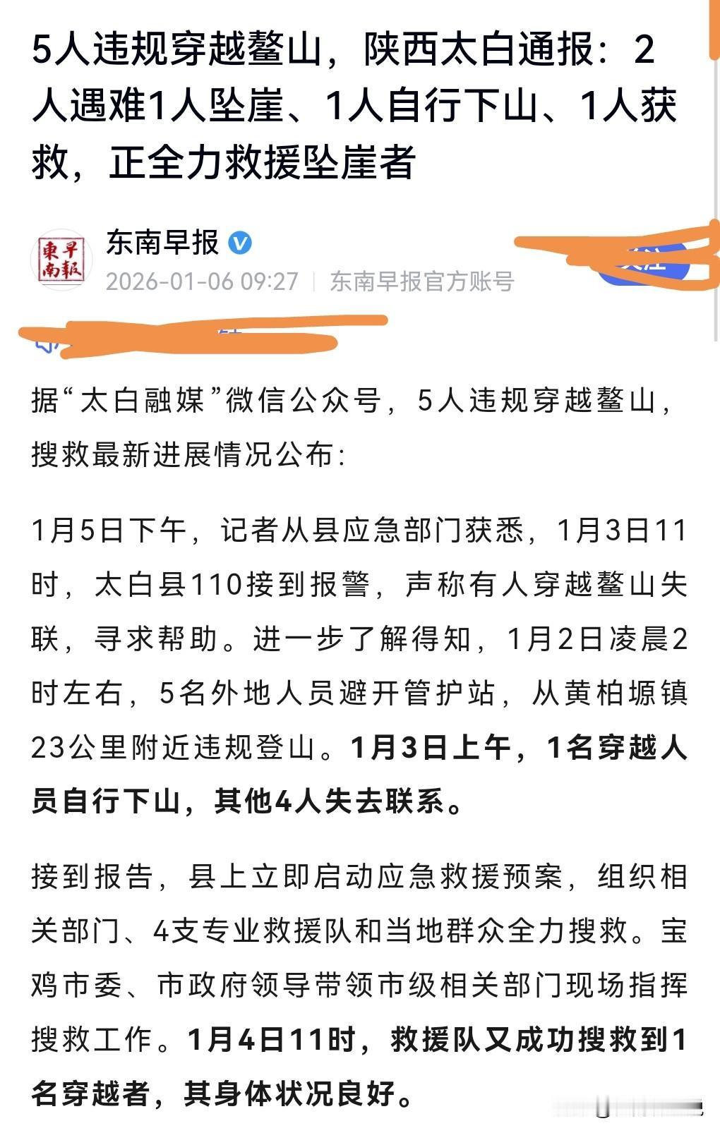 这真的是太悲剧了,发现了两名遇难者。 所以说人要听劝,别做危险的事。 这大冷的天,还有雪,爬什么山呀? 1月6日报道,小鳌太线剩余失联3人全部找到。 其中两人遇难。 这真是敲响了警钟啊。