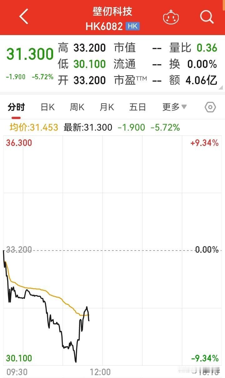 【亏损类高估值股票的风险!】恒生指数上涨也无法改变,壁仞科技连续下摇的尴尬局面! 这说明了什么?说明了成熟市场对于亏损类题材股的一个市场定位。指数上涨,但这些科技题材高估值发行的股票,却连续下跌! 对于A股市场的警示,那就是同类股票过高的估值风险将进入中长期的下跌之路!