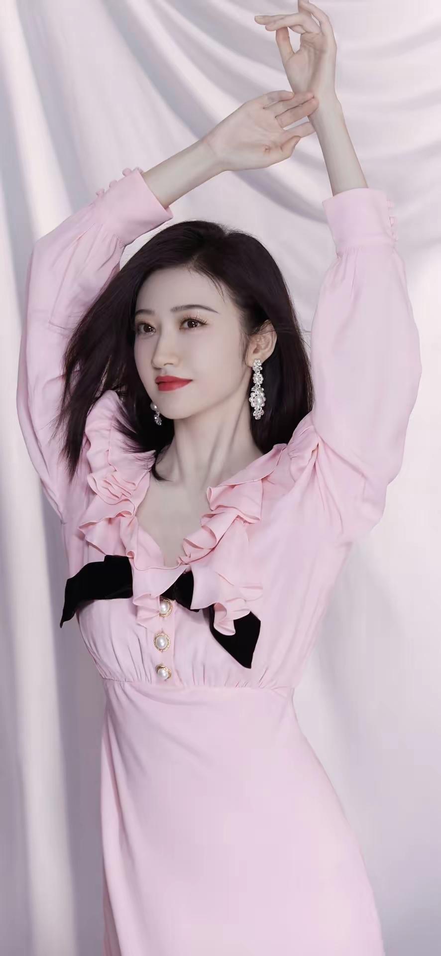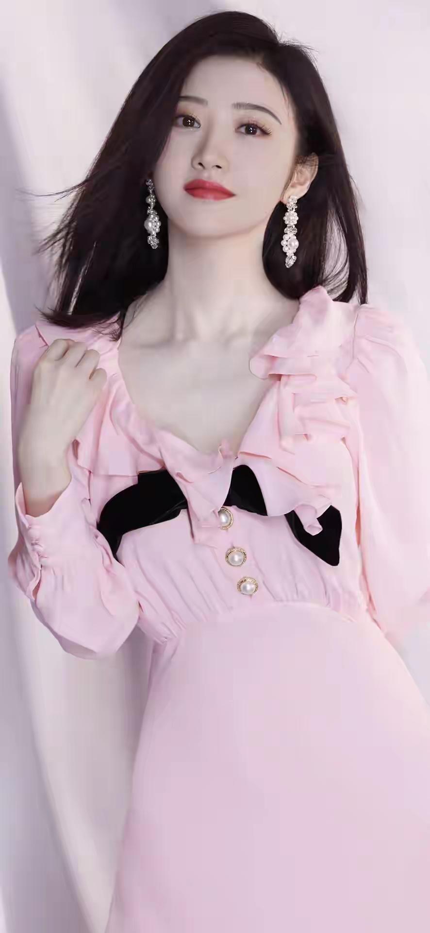 温柔粉裙,优雅气质,闪耀耳环,完美侧颜,女神范儿十足!💖✨