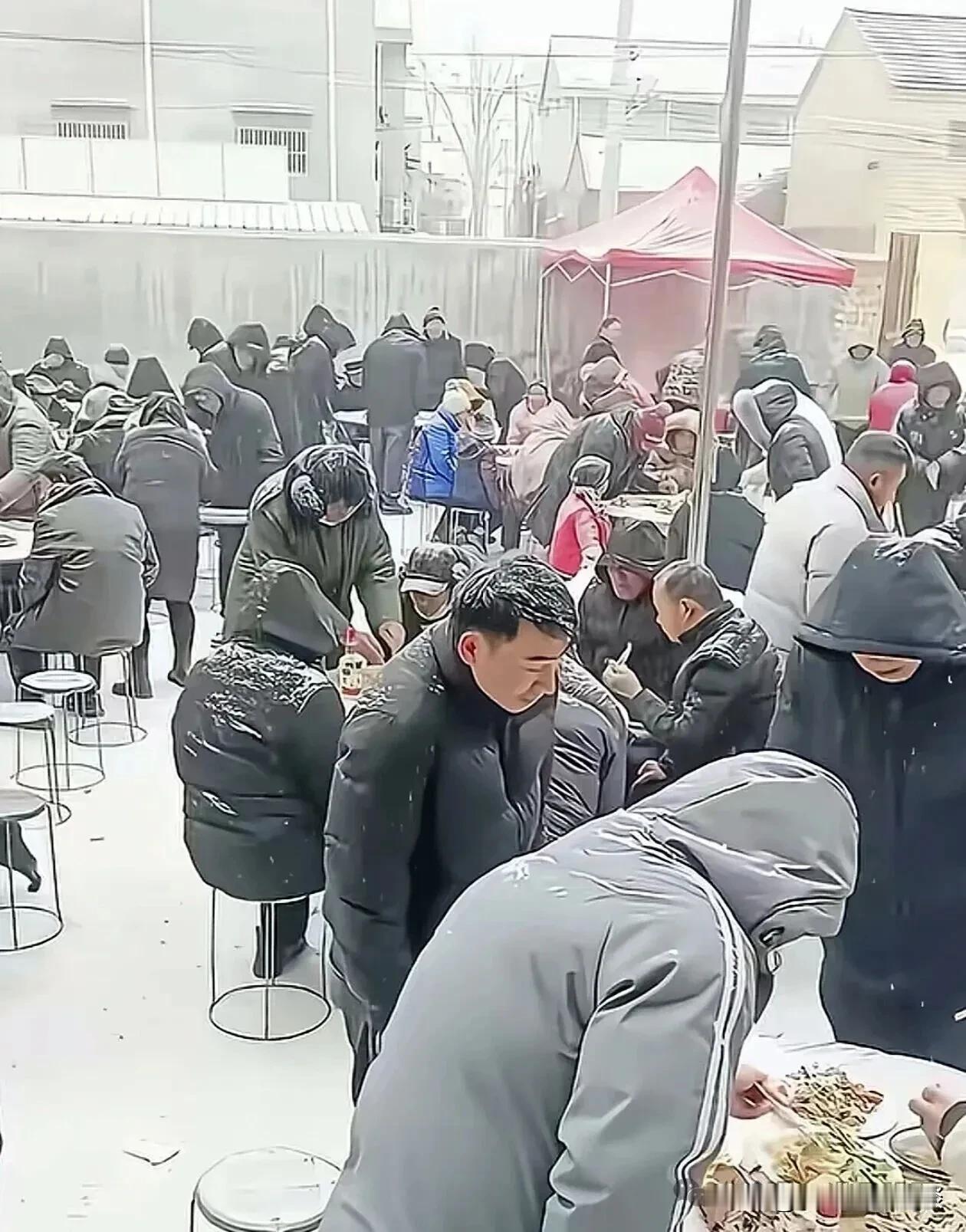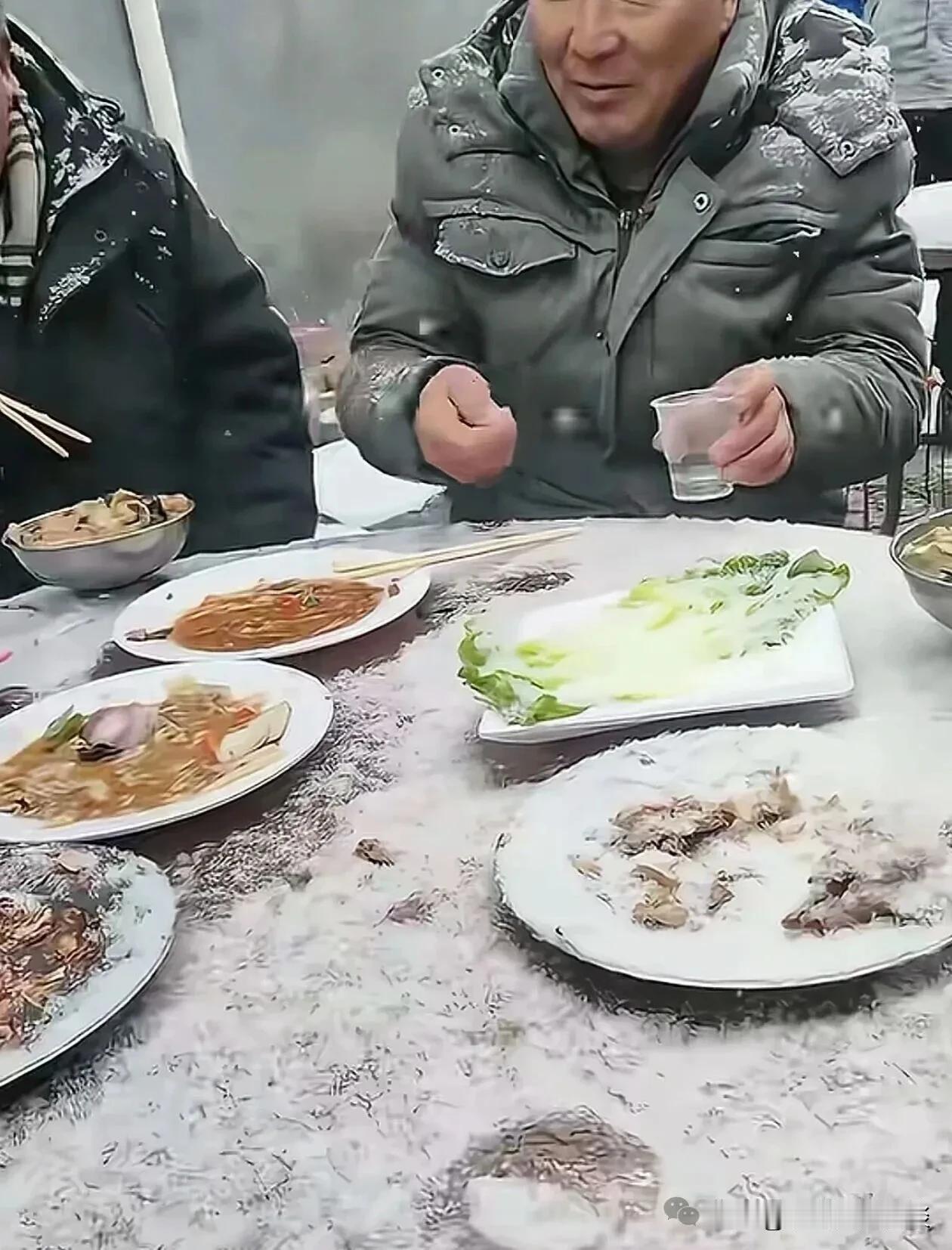 这酒席非吃不可吗?村里一家办喜事,邀请村里的人去喝喜酒,本来兴冲冲的去了,刚坐上吃饭开始下雪了,主家没有提前搭帐篷,大家伙都坐在风雪里吃,越下越大,大家身上落满了雪花。上来的菜,热菜很快就凉了,越吃越冷,吃了几口就跑路了,算了,这酒席吃的啥也不是。 主家忒不会办事了,自己家办事,不提前看看天气预报,做好充足的准备。大家伙都跑了,🈶的菜有的都没上,反倒给主家省了。