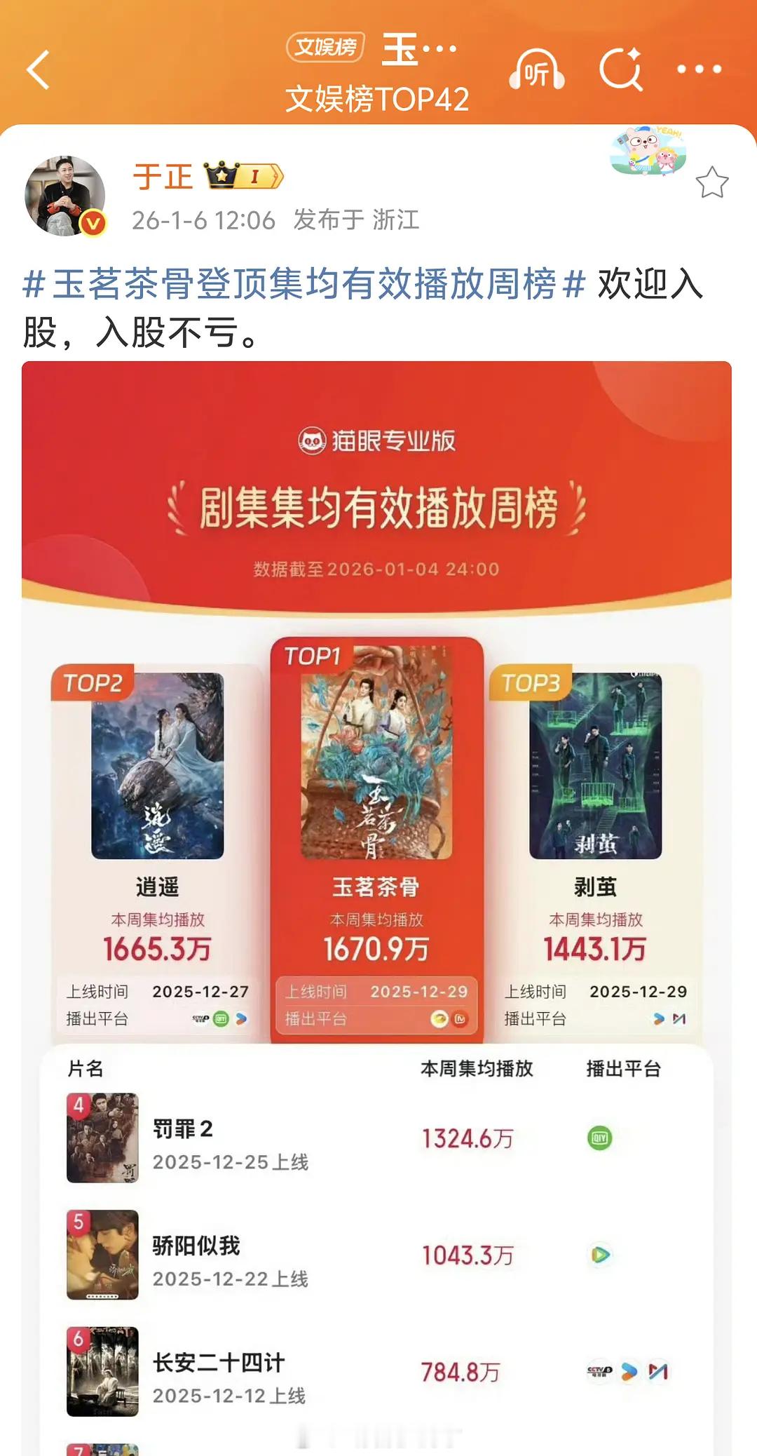 于正说平台对《玉茗茶骨》特别满意,这部剧播的好吗?🤔
