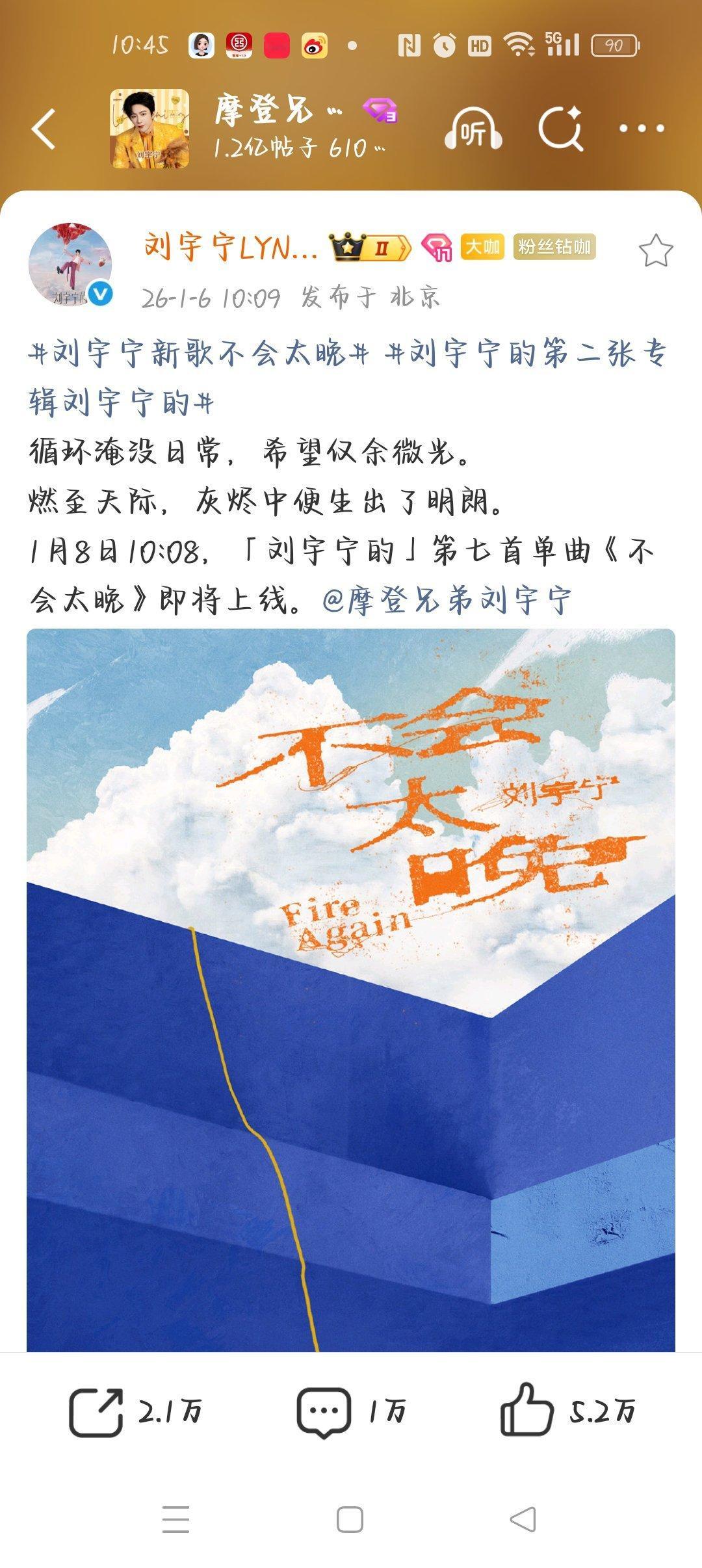 从《十》的诚意满格到「刘宇宁的」的宇宙漫游,他用数年时光打磨音乐棱角,让每一次发声都成为惊喜。 好歌从不怕晚,当熟悉的磁性嗓音撞上新鲜曲风,这场跨越时光的音乐之约,终将不负所有期待。刘宇宁新歌不会太晚 | 刘宇宁的第二张专辑刘宇宁的