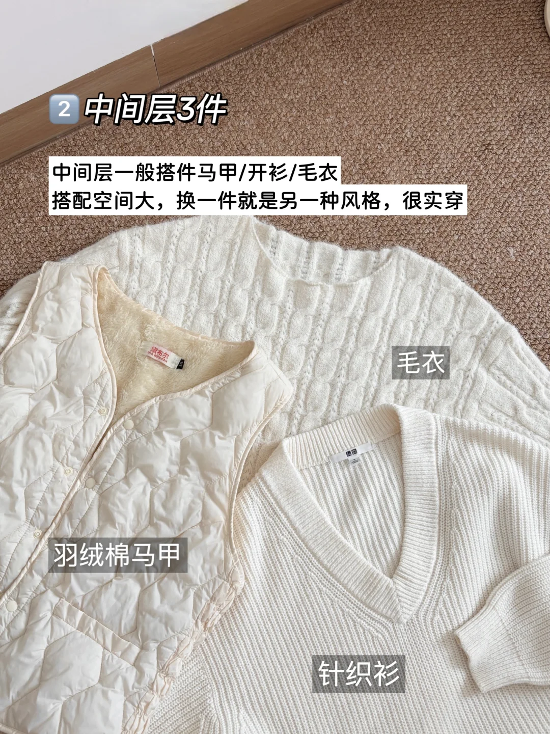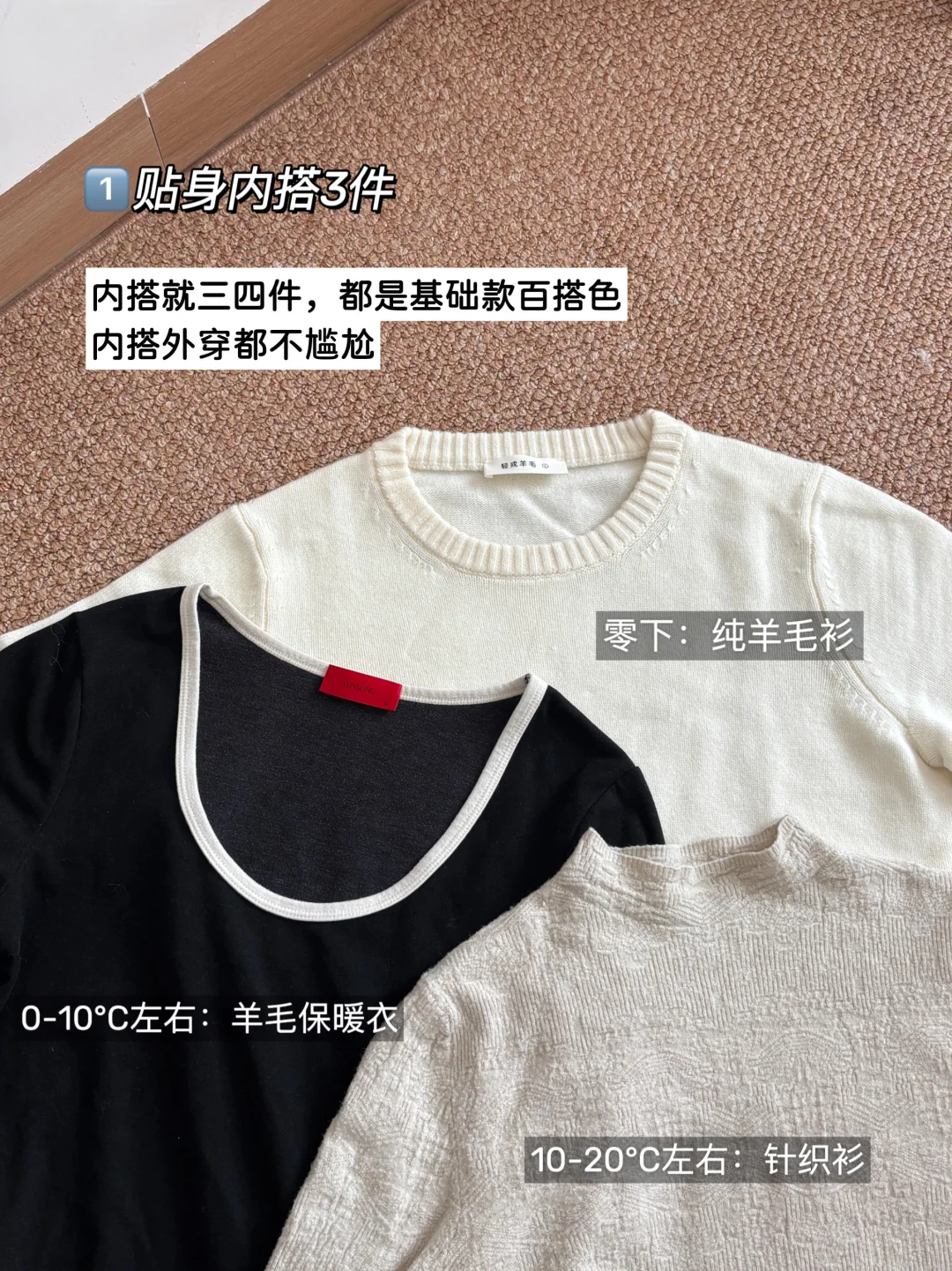 今年秋冬尝试了三层穿衣法 我发现根本不需要买太多衣物 就能兼顾保暖与体面,只需十几件单品 就能轻松应对从20°C到-10°C的温差变化 - 🟤 分享我的三层穿衣法: ✔️ 外层防风锁温 ✔️中层保暖美观 ✔️内层舒适亲肤 - 3层穿衣法不仅轻便保暖,还省钱省精力!! -