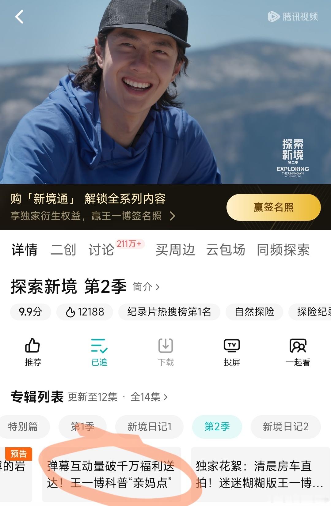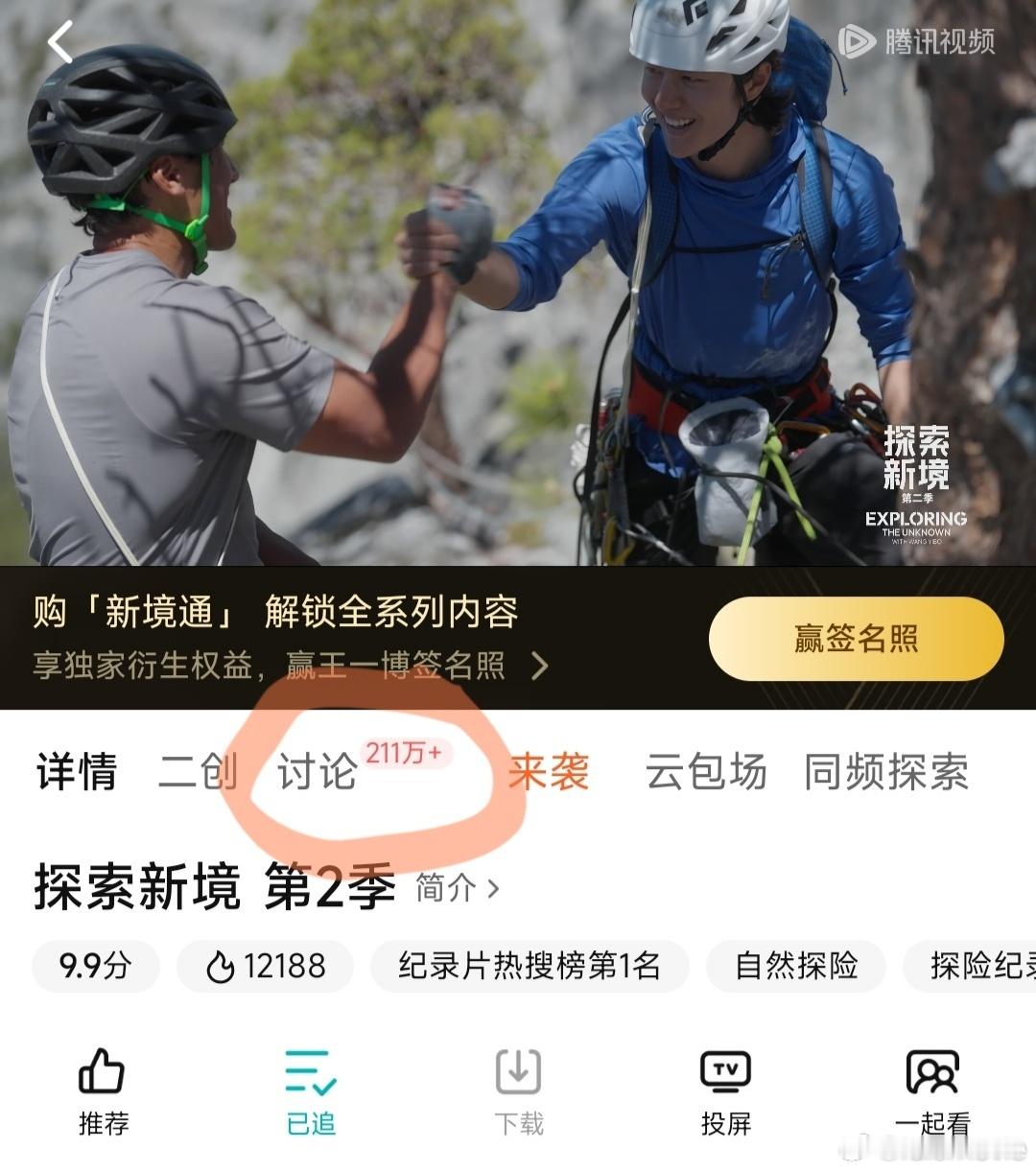 《探索新境2》弹幕互动破千万,讨论破210万,近10万人打分评分依旧9.9,不愧是发起人王一博的顶尖IP,打工人的诗和远方,迷茫者的精神灯塔,年轻人的心灵净土。跨年电影愿探索新境2王一博探索新境