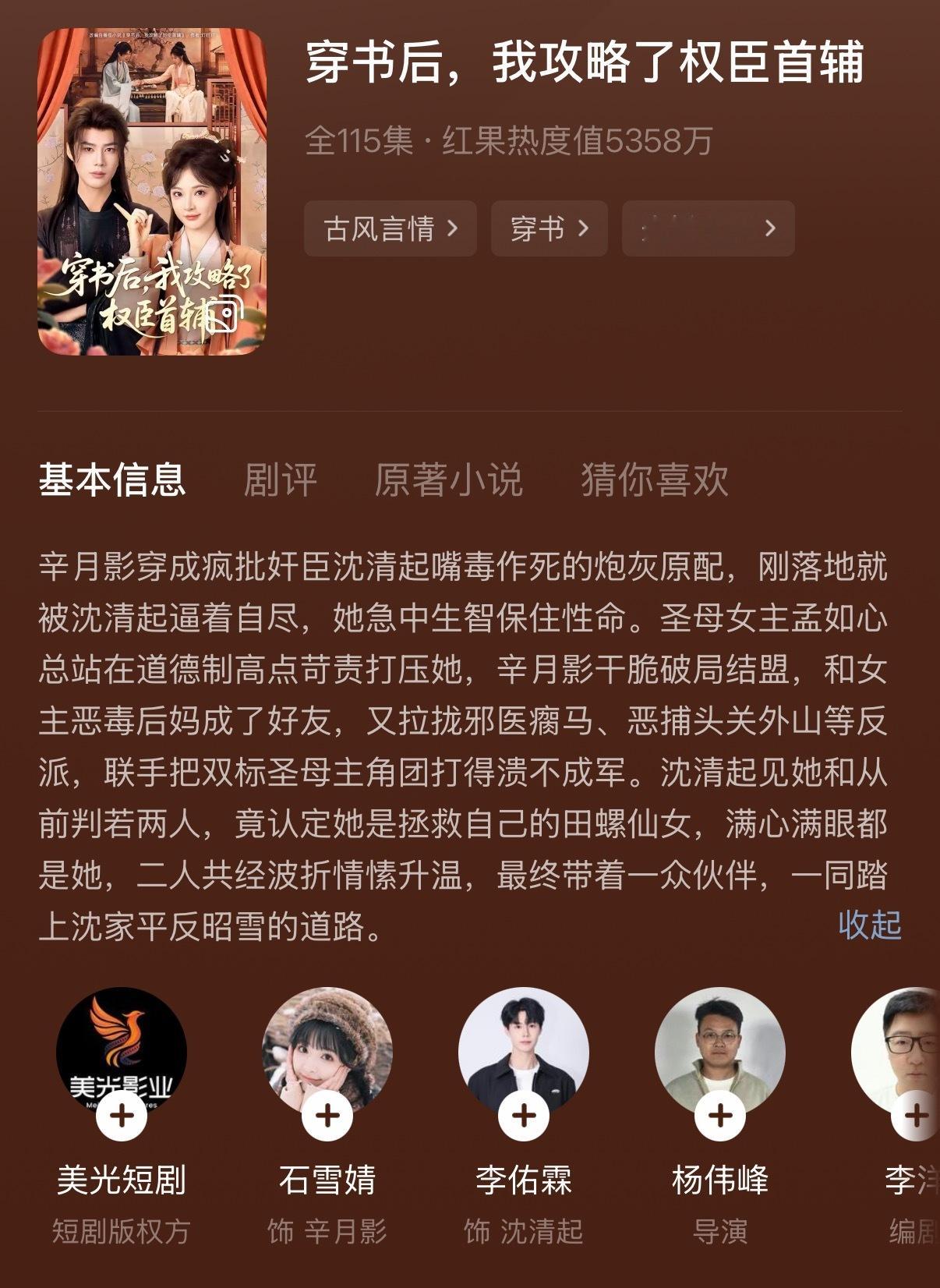 最近看了一些 无聊能看看的第一个玫瑰与青松 ,这部是慢节奏点的小芬德拉,导演肯定是借鉴盛夏芬德拉的,每集结尾差不多,包括男主给女主下面🍜两人一起吃面,男主帮女主穿鞋,男主和女主坐车里吹风 等等 都差不多! 好评是导演很会配Bgm 也会拍的,有一首小曾的迷失情感迷宫配的特别好! 所以观众还是很吃芬德拉这套的~ 搞了个差不多的数据依旧好,包金妮可爱的,老抠长得差点意思,看到后面疯狂拉镜头!第二个 穿书后,我攻略了权臣首辅! 这部前面很搞笑,那个老马太搞笑了,瘸子治腿! 后面有点拖! 能看看的! 新石李也很配! 060古装帅的第三个 拯救我的黑白月光! 这部剧情不错,时空穿梭 ~ 女主意外救了三年后的男主。 男主穿越到三年前救女主~三年后的黑男主和三年前的白男主都喜欢女主! 最后没交代清楚,其实就是女主等了三年,等三年前的男主和三年后的男主记忆重合! 两人在一起了! 女主喜欢的是黑男主就是三年后的! 李子杰有苏的,黑的吃白的醋很好嗑