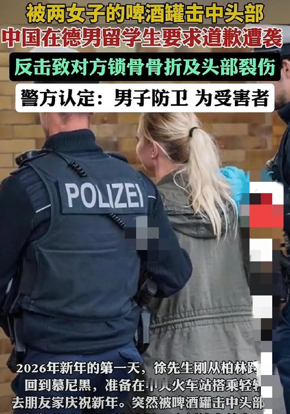 太棒了,打赢了,好样的,正反防卫,没丢炎黄子孙的脸,而且警察和路人们也很有正义,给他们和德国的法律点赞!这如果在某些地方肯定会判互殴,谁伤情严重谁有理。