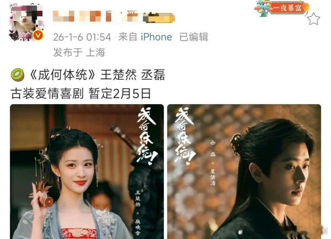 2月古装剧上新情况王楚然、丞磊《成何体统》,🥝,穿书搞笑题材白鹿、王星越《唐宫奇案》 ,👖,古装探案题材李昀锐、张康乐《冰湖重生》 ,🐧➕🥝