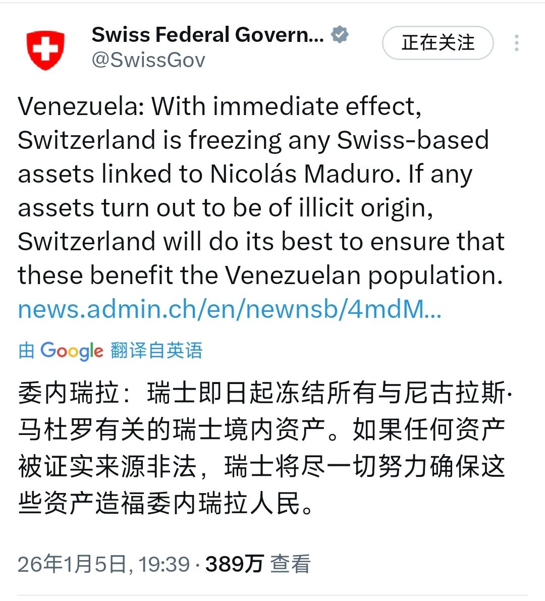美军前脚抓人,瑞士后脚“抄家”,这还是那个号称“永久中立”的保险柜吗? 1月5日,瑞士政府突然出手了。瑞士联邦政府宣布,即日起冻结所有与马杜罗有关的境内资产。官方辞令声称,如果资产被证实来源非法,将尽一切努力确保这些资产造福委内瑞拉人民。 这种表态表面上看似乎是正义的伸张。由于马杜罗在西方舆论中被定性为独裁者,这种冻结举动往往被解读为帮助委内瑞拉人民追缴非法资产。这种论调认为,瑞士在维护国际公义,试图将非法财富返还给受害者。 表面上看,这是瑞士在打击腐败;而实际上,这是西方金融体系对失去权力的政权进行的一次精准切割。 这里的问题在于:马杜罗在瑞士存钱不是一天两天了,为什么早不动手,晚不动手,偏偏等美军把他抓捕之后才迅速跟进? 就是说,事实证明,瑞士所谓的“永久中立”,说穿了就是一种看人下菜碟的商业模式。 当马杜罗依然掌握政权并拥有资源调配权时,瑞士的银行家们会严格恪守所谓的客户隐私原则。但在美国决定武力掀翻桌子后,瑞士立刻换上了另一副面孔,引用相关法律配合所谓的国际行动。 说白了,瑞士早已不再是传统意义上的中立国,而是美元霸权体系下的金牌账房。之所以出现这种转变,是因为瑞士的金融主权在多年前就已经在外部压力下名存实亡。自从美国司法部曾通过法律和经济手段逼迫瑞士银行放弃保密制度以来,瑞士的银行业就成了美元结算体系的延伸。 任何被美国列入黑名单的目标,在瑞士银行眼里就不再是受保护的客户,而是必须立即清理的坏账。如果不配合,瑞士自身的金融机构就可能被踢出全球结算体系,这对以金融立国的瑞士来说才是灭顶之灾。 更深层的逻辑在于那句造福委内瑞拉人民。这是一种极其典型的政治洗白。历史经验显示,这些被冻结的巨额资产,往往不会真正流向那个国家的基础设施或民生改善,而是成了扶持亲美新政权的启动资金,甚至是支付给西方公司所谓重建合同的预付款。 这本质上是利用被接管国家的财富,来支付对其进行政治重塑的成本。这种金融收割的逻辑,将原本属于主权国家的资产变成了霸权可以随意分配的奖赏。 实事求是讲,瑞士这一刀,砍断的不仅仅是马杜罗政权的财路,更是全球南方国家对西方金融安全体系的最后一点信任。这种举动在国际社会引起了深层震动,让许多发展中国家意识到,西方的金融机构并不能提供真正避风港。 事实再次证明,在西方的规则体系中,私有财产神圣不可侵犯是有前提条件的,即资产所有者必须始终站在其认可的政治圈子之内。 有一说一,瑞士的这次行动再次给全世界提了个醒:在这个动荡的地缘政治时代,所谓的金融中立不过是强权政治的遮羞布。当大炮真正响起来的时候,保险柜的密码,永远掌握在那些掌握武力优势的一方手中。 以上是小编个人看法,如果您也认同,麻烦点赞支持!有更好的见解也欢迎在评论区留言,方便大家一同探讨。
