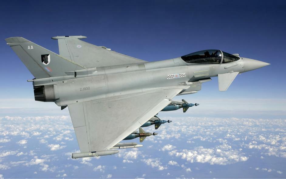 欧洲“台风”战斗机“台风”(Typhoon)战斗机是欧洲战机公司研制的双发多功能战斗机,2003年开始服役。“台风”战斗机采用鸭式三角翼无尾式布局,矩形进气口位于机身下。这一布局使其具有优秀的机动性,但是隐形能力则相应被削弱。该机广泛采用碳素纤维复合材料、玻璃纤维增强塑料、铝锂合金、钛合金和铝合金等材料制造,复合材料占全机比例约40%。“台风”战斗机是世界上少数可以在不开后燃器的情况下超音速巡航的量产战斗机,其采用的2台Eurojet EJ200涡扇发动机非常优秀,单台推力可达6118千克。“台风”战斗机是集便于组装、隐身性、高效能和先进航空电子于一体的多功能战机,除空战能力强之外还拥有不错的对地作战能力,可使用各种精确对地武器。与其他同级战机相比该机也更具智能化,可有效降低飞行员的工作量,提高作战效能。|