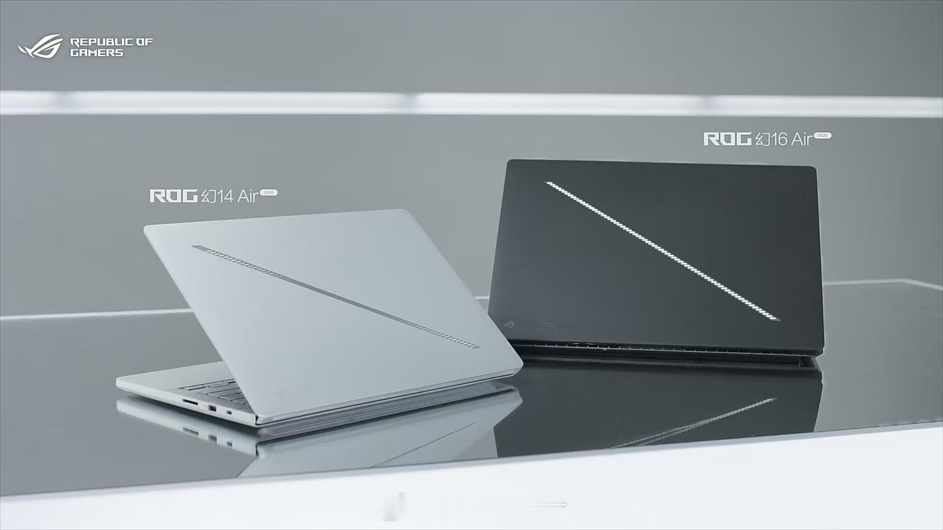 ROG2026新品来袭。ROG幻Air 2026系列全面亮相,搭载第三代酷睿Ultra平台,至高RTX 5090助阵。全系升级ROG星云原画屏,1100nits峰值亮度,HDR True Black 1000认证+超画引擎,多重深度调校,呈现极致光影。冰川散热架构优化,内吹设计全面升级,CNC精工机身融合全新35段式光线矩阵,于细节处彰显未来质感。轻薄之躯,蕴藏极致性能。ROG幻16AirROG幻14Air