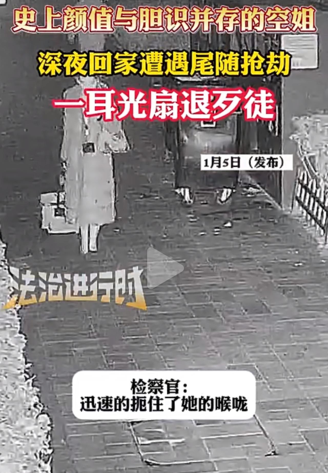 深夜下班回家,刚到楼道门口就被陌生男从背后扼住喉咙拖行索财,危急关头,空姐反手一记耳光,竟然直接把歹徒扇跑了?这波自救,看得人既揪心又忍不住叫好! 2026年1月5号深更半夜,这位空姐刚走到住处门口,正准备掏钥匙开门呢,身后冷不丁窜出来一个陌生男人。那男的啥话没说,上去就一把掐住她的喉咙,揪着她的衣领子使劲往屋里拽,还刻意压低声音恶狠狠地威胁,逼她拿出3万块现金。空姐当时吓得魂儿都快飞了,但心里还绷着根弦没完全乱,情急之下想都没想,抬手就给了那歹徒一巴掌。 这一巴掌直接把歹徒打懵了,他反手也扇了空姐一掌,却没再继续施暴,反而慌里慌张地转身就跑,没造成更严重的伤害。事后分析,这歹徒大概率是临时起意抢劫,身上没带武器,冷不丁遭了反抗,节奏全被打乱,又怕动静太大引来邻居,这才仓皇溜了。 这事儿一传出去,网上直接就炸锅了。好多人一个劲夸空姐,说她又勇敢又机灵,明明跟歹徒力量差那么多,却能用这么小的代价,把这起犯罪给打断了;可也有法律专家和安全方面的行家出来提醒,说这种成功纯属撞大运,真不是每次都能行得通,要是随便反抗,很可能把歹徒惹急了,万一对方身上带了家伙,或者情绪一失控,那后果简直不敢往下想。 这事儿也戳中了夜归女性的安全痛点,尤其是空乘这种经常上夜班的职业。大家都呼吁,企业该给夜班员工安排护送,社区多装些应急报警装置,咱们自己晚上回家,也得多留个心眼,尽量别暴露职业标识,安全永远是第一位的!尾随 临时起意抢劫 有勇有谋