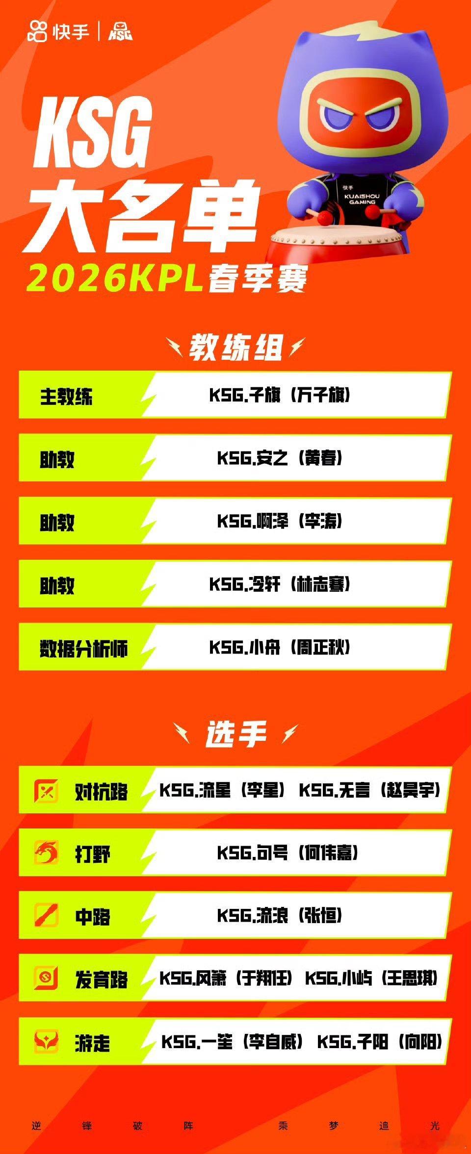 KSG公布2026KPL春赛大名单,子阳因纠纷暂入名单