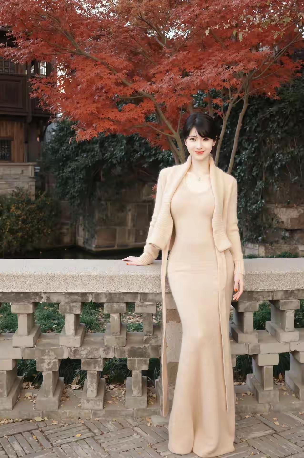 温柔粉毛衣搭配米色头巾,优雅又舒适!