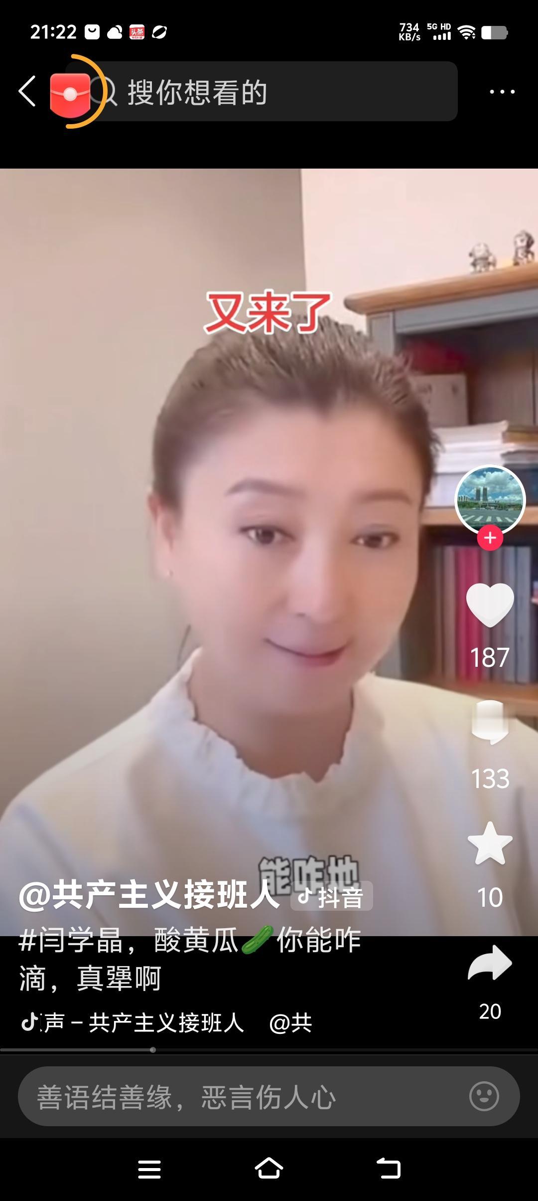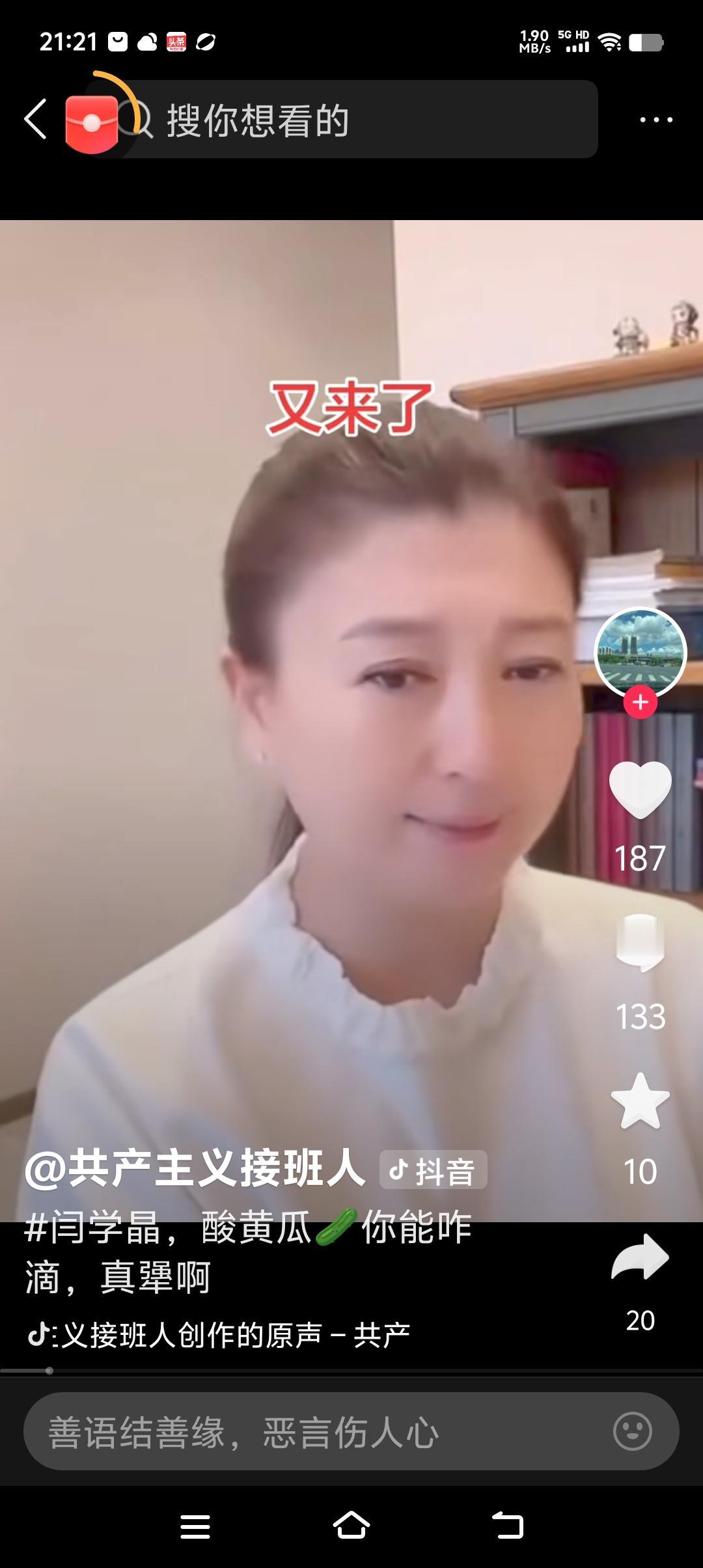 看到了闫老师最新视频,她说,能咋滴啊,爱咋咋地! 她视频中说:“能咋滴啊,也就问你能咋滴?爱咋咋地滴,不坚持,就是怂,我不是怂的人,我是那个坚持的人!” 大家分析分析,她的话是啥意思? 是不是说,我没有错,能给我咋滴,你们能给我怎样?我就不道歉,我就是坚持到底! 看这架势是要跟粉丝杠到底了! 好像在叫号,看看你们能给我咋滴?谁怕谁啊!是不是有这个意思?