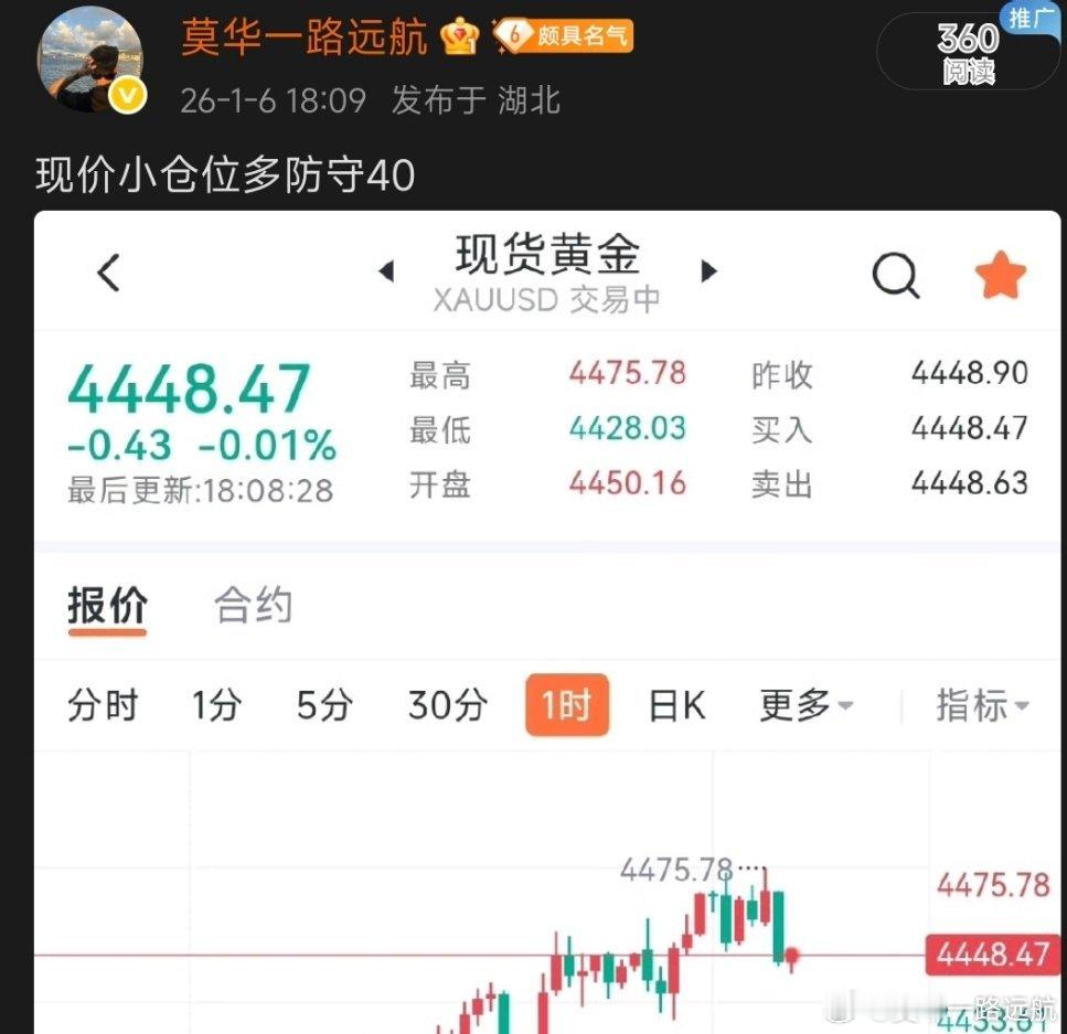 1.8凌晨交易策略黄金现价来到了4465附近这个位置目前是处于一个阻力位也是一个