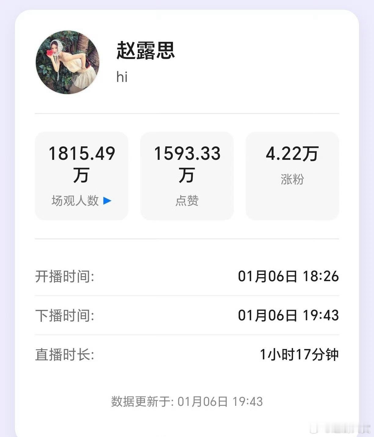 赵露思游戏直播一小时观看人数有1815万人,点赞数1593万,好火吧,就这个女顶流爽!