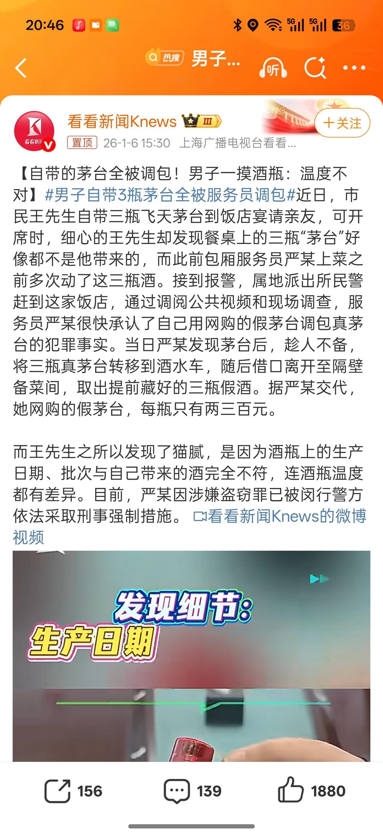 男子自带3瓶茅台全被服务员调包我靠,这也能那么快被掉包出去一定要注意啊