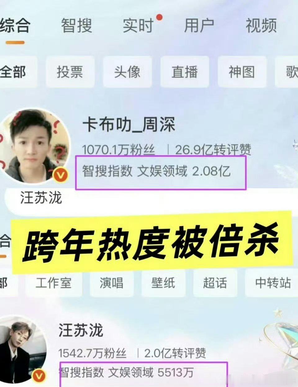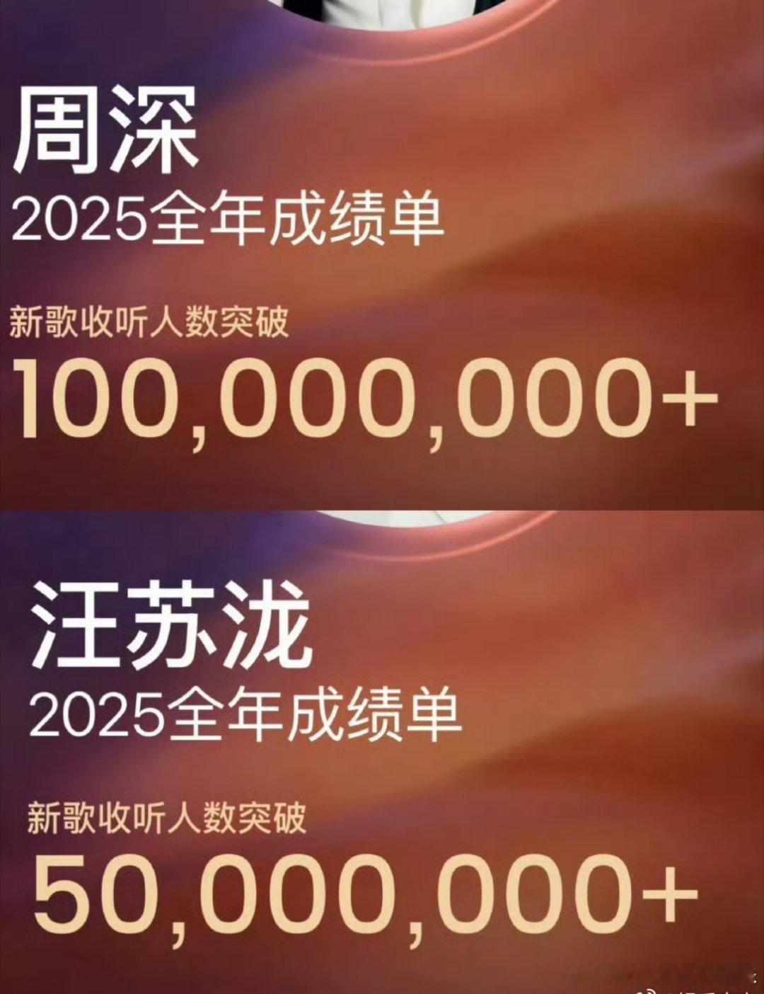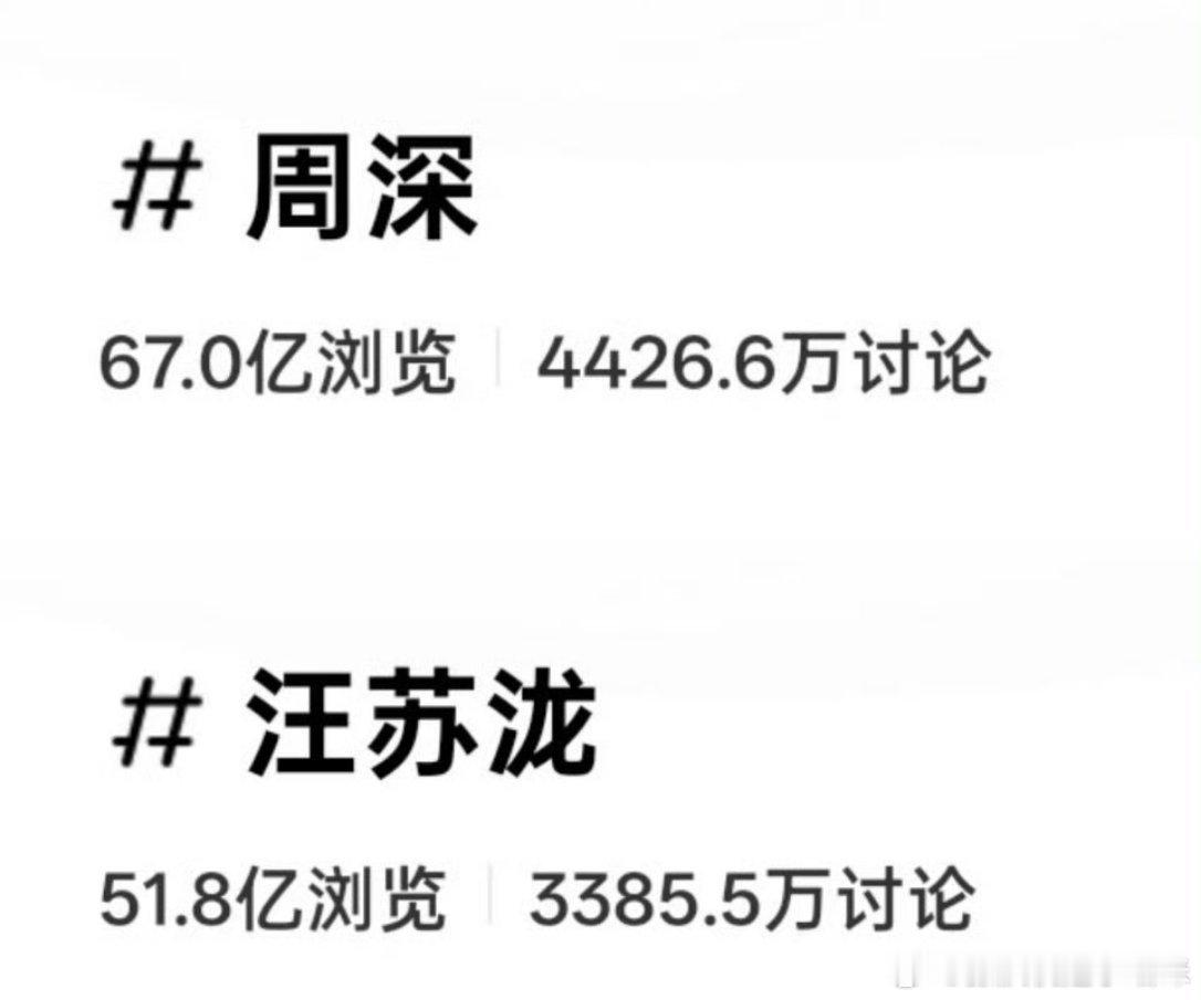 周深,汪苏泷两家粉丝比拼实绩了。两个人综艺表现应该差不多,歌曲传唱度我感觉也差不多。可能周深在技术方面体感要比汪苏泷稍微好一些?感觉他蛮会飙一些高音的。但是汪苏泷是创作型歌手,创作力强于周深外形的话,汪苏泷应该要比周深更好一些,毕竟身高在这里,颜值嘛我觉得汪苏泷好一点。但是各有各的菜吧,这也没什么好说的。你们觉得综合实力谁更强?