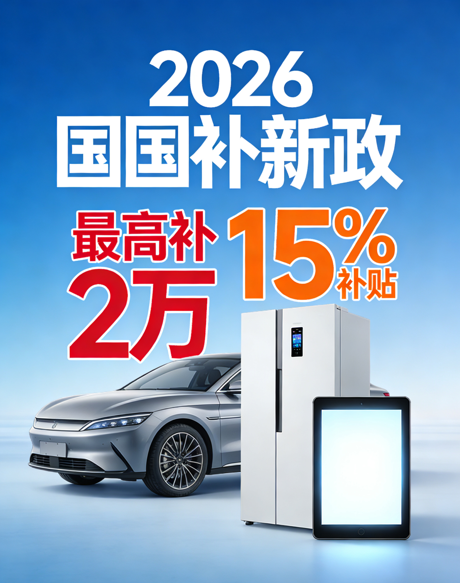 2026国补新政正式落地!买车最高补2万、家电数码15%补贴,申请流程一文说清✅