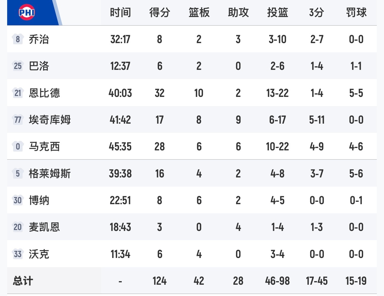 马克西绝杀不中,76人124-125输给全替补掘金。湖人、掘金、火箭同为66.7