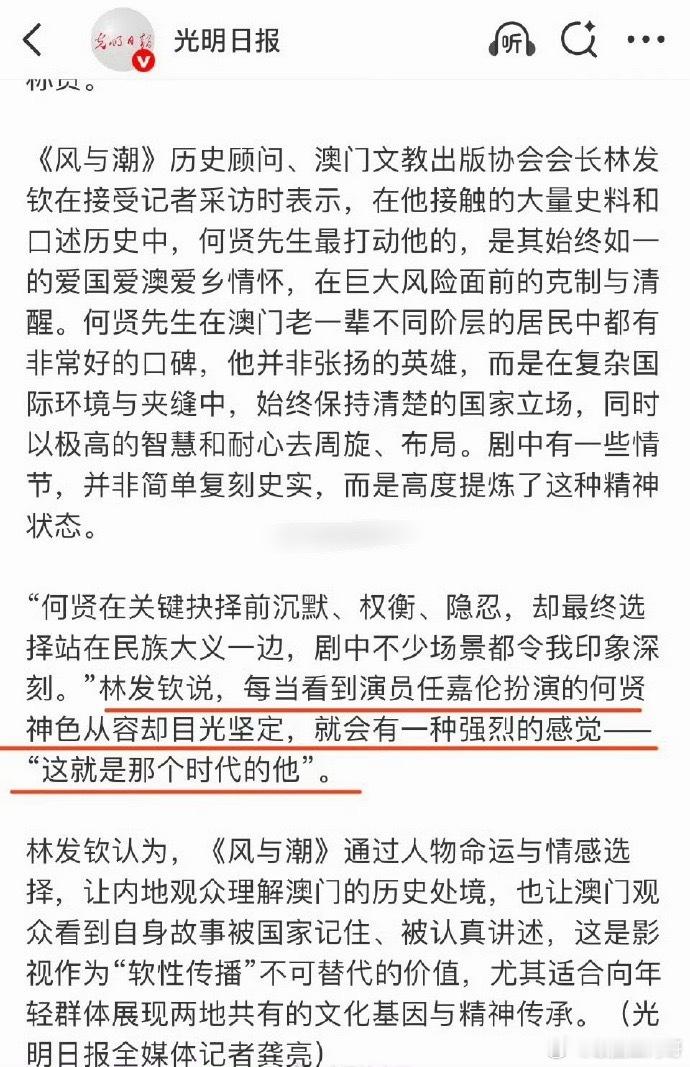 任嘉伦在风与潮中的演技获林发钦高度称赞