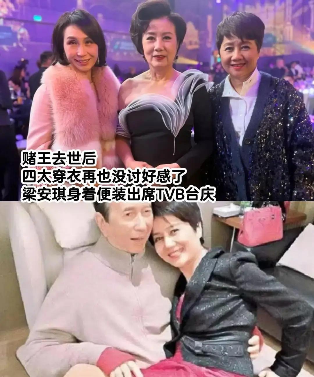 赌王走后,四太梁安琪像换了个人。 以前她总穿大红大紫,生怕别人看不见,现在深色套装素颜出镜,反而更自在。 TVB台庆她坐前排,跟何超琼何超凤并肩合影,笑得像普通阿姨。 网友都说她争了一辈子终于松手,豪门恩怨原来也能翻篇。 人老了就想图个清净,争来的东西带不走,一家人和气才最实在。