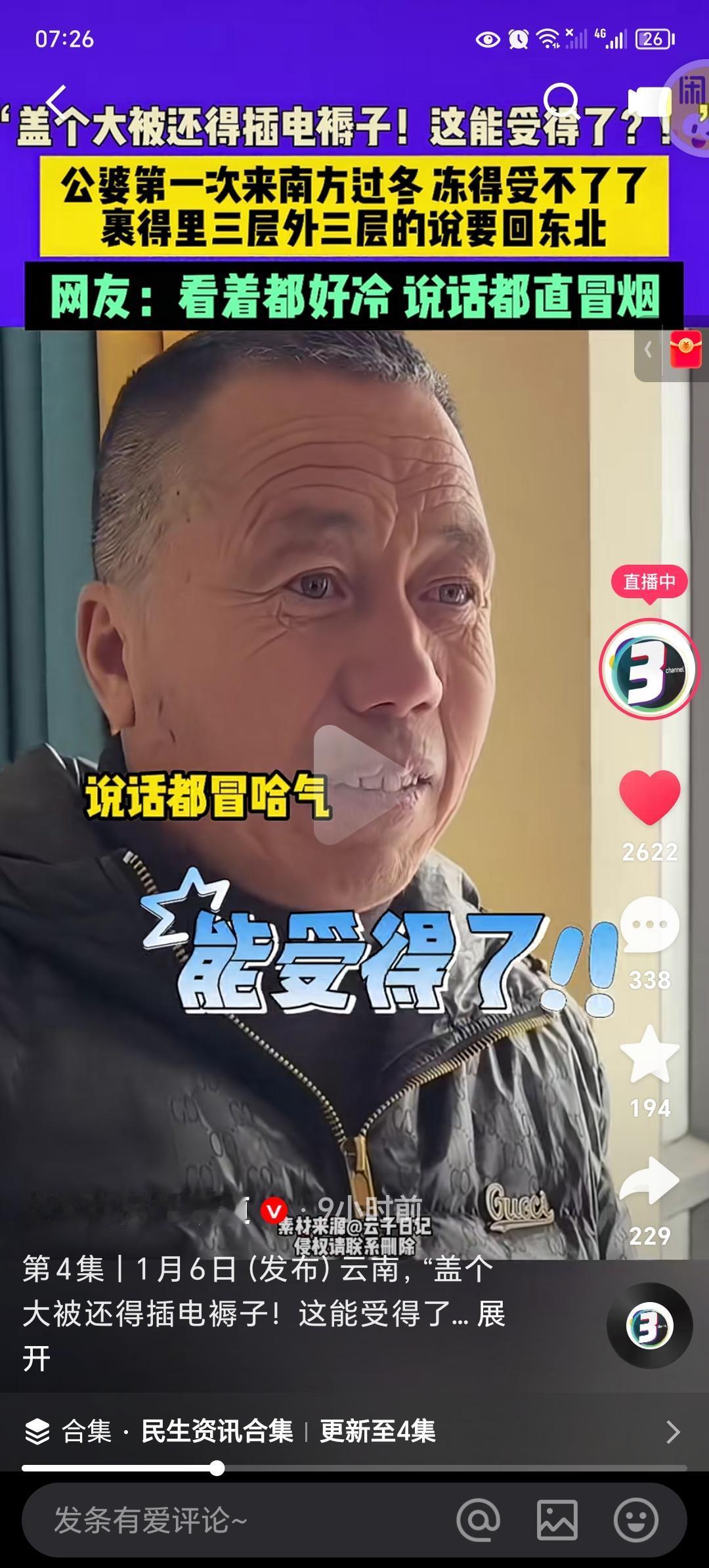 公婆不干了,要回东北!南方待的够够的了 公公说:要不是快过年了,我们早回东北了! 盖个大被还得插电褥子!这能受得了? 公婆第一次来南方过冬冻得受不了, 裹得里三层外三层的说要回东北。 网友:看着都好冷说话都直冒烟。 结语:南方没有暖气吗?我在北方,屋里27℃。