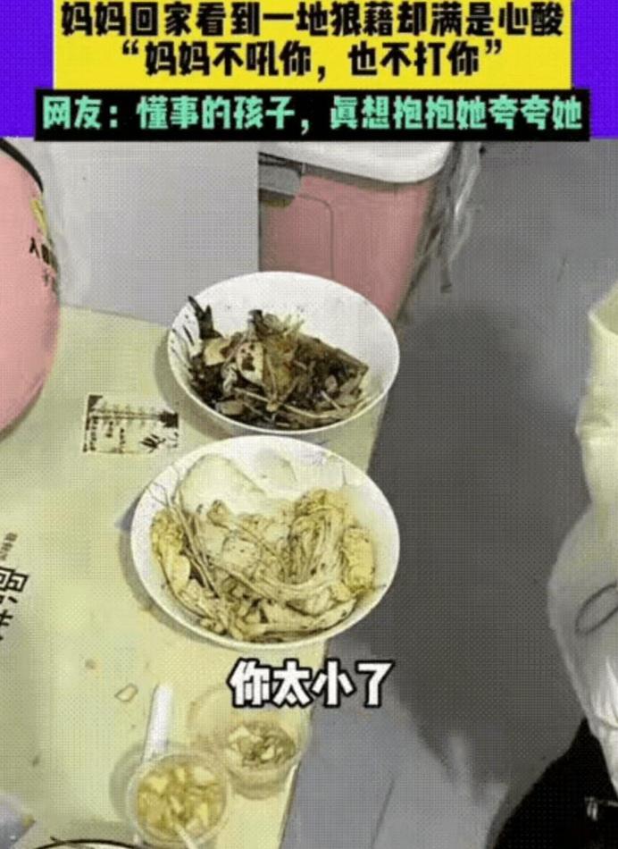 “这是来报恩的!”近日,福建一离异女子周末要加班,只得把四岁女儿独自留在家。谁料,她下班后,却发现屋里一片狼藉,不由得怒火中烧,然而当她看清后却瞬间泪目! 在深秋的傍晚,六点零七分,林薇拖着灌铅的双腿拧开出租屋的门锁。 连续加班三十六小时的疲惫,让她四肢感到酸疼。 等门轴转动刚落,一股混杂着焦糊与湿漉漉水汽的味道便扑面而来。 地上是蜿蜒的水渍,蔫黄的菜叶黏在瓷砖缝隙间,打翻的酱油瓶在地板上。 林薇太阳穴突突跳动,离婚三年独自抚养女儿的艰辛在脑中翻腾,积压的委屈化作舌尖抵住后槽牙的冷笑。 她以为闯祸的是隔壁那只总溜进来的野猫,直到看见餐桌中央的西红柿炒蛋。 旁边一碗水煮青菜长短参差,唯一完整的白米饭凝结着半锅粘稠米浆。 四岁的女儿朵朵穿着粉色睡裙站在桌边,灶台上散落的土豆皮堆成小丘。 那一刻林薇喉咙突然发紧。 她想起三天前的深夜,朵朵抱着绘本蜷在她怀里呢喃:“妈妈的手总是凉凉的。” 想起上周暴雨天朵朵执意背着书包送伞去公司,浑身淋透却骄傲展示藏在背后的干毛巾。 此刻眼前这片狼藉不再是灾难现场,分明是孩子用整个灵魂焐热的告白。 朵朵学会察言观色始于某个加班的冬夜。 林薇瘫坐在地板组装新买的衣柜零件,螺丝刀第三次从指间滑落时,朵朵默默爬过来捡起工具。 “妈妈手疼吗?” 孩子的小手包裹住她冻红的指尖。 此后每当林薇对着电脑屏幕揉太阳穴,朵朵总会端来温水杯。 之后,厨房成了朵朵的秘密基地。 林薇加班时总能听见冰箱门开合的轻响,转身却只见朵朵踩着矮凳偷拿酸奶。 那天提前回家,她撞见孩子踮脚够燃气灶开关的惊险画面。 朵朵吓得摔进面粉袋里:“我看妈妈颠勺好厉害...” 朵朵的烹饪课始于儿童塑料厨具套装。 林薇本想当作过家家玩具,直到发现朵朵偷偷用真菜刀练习切香蕉。 出租屋逼仄的厨房容不下两人转身,朵朵搬来洗澡用的防滑垫垫脚,灶台高度仍超过她胸口。 林薇某次提前下班撞见震撼场景,朵朵左手压着土豆,右手握刀颤抖着往下剁,飞溅的土豆泥在墙面画出抽象画。 这场危险的修行充满黑色幽默。 煮米饭忘记放水变成锅巴脆片,煎蛋时油星溅上手背烫出水泡,炒青菜忘了关火收获满锅炭球。 事发当日朵朵异常兴奋。 清晨六点就摇醒林薇:“今天做魔法餐!” 她翻出林薇囤积的临期鸡蛋,把朵朵爸遗留的卡通围裙系成蝴蝶结。 水漫金山源于朵朵同时打开水龙头洗菜和烧水壶,菜叶散落是因她模仿电视里大厨抛锅动作。 至于那锅夹生饭,是朵朵坚信“米粒跳舞才会香”而拒绝搅拌的铁证。 当林薇推门看见餐桌战场时,愤怒在看清朵朵作品瞬间土崩瓦解。 焦黑西红柿炒蛋旁贴着手绘标签“妈妈的笑脸”,长短不一的青菜组成绿色皇冠,凝结米浆的碗底沉着朵朵最爱的海苔碎。 孩子脸上混合着期待与恐惧的表情,而林薇蹲身收拾残局时摸到朵朵冰凉的小手。 孩子突然抽泣起来:“幼儿园老师说...做饭要用很多力气。” 原来朵朵目睹食堂阿姨揉面的艰辛后,认定烹饪是最高级的关怀仪式。 那些散落的菜叶是她挑拣的最嫩菜心,焦糊的鸡蛋是反复尝试三十次的成果。 这场迟到的烹饪教学持续了整个周末。 林薇握着朵朵的手腕感受刀锋走向,讲解油温判断的诀窍。 当朵朵成功炒出金黄的鸡蛋时,林薇忽然意识到所谓母爱从来不是单向付出,而是两个孤独灵魂的相互认领。 三个月后的冬至,朵朵独立完成的饺子宴登上业主群热搜。 视频里二十多个形态各异的饺子在沸水里沉浮,朵朵踮脚搅动汤勺的模样被邻居抓拍。 林薇在朋友圈写道:“从前怕她受伤不让碰刀,现在庆幸教会她掌控火候,有些成长注定伴随烫伤。” 生活这本大书里,孩子是最勇敢的译者。 他们把父母的叹息译成拥抱,将疲惫眼神转码成加油手势。 就像朵朵总说的:“妈妈的味道是番茄炒蛋的酸甜,我的味道是帮妈妈洗碗的泡泡香。” 当城市霓虹吞没最后一缕晚霞,无数出租屋里相似的灶火渐次亮起。 所谓家的温度,不过是有人愿为你颠簸一生,而你愿为他洗手作羹汤。 看人挑担不吃力,直到自己也扛起扁担才懂得,生命最深的羁绊,往往始于孩子踮脚为你够灶台的那个黄昏。