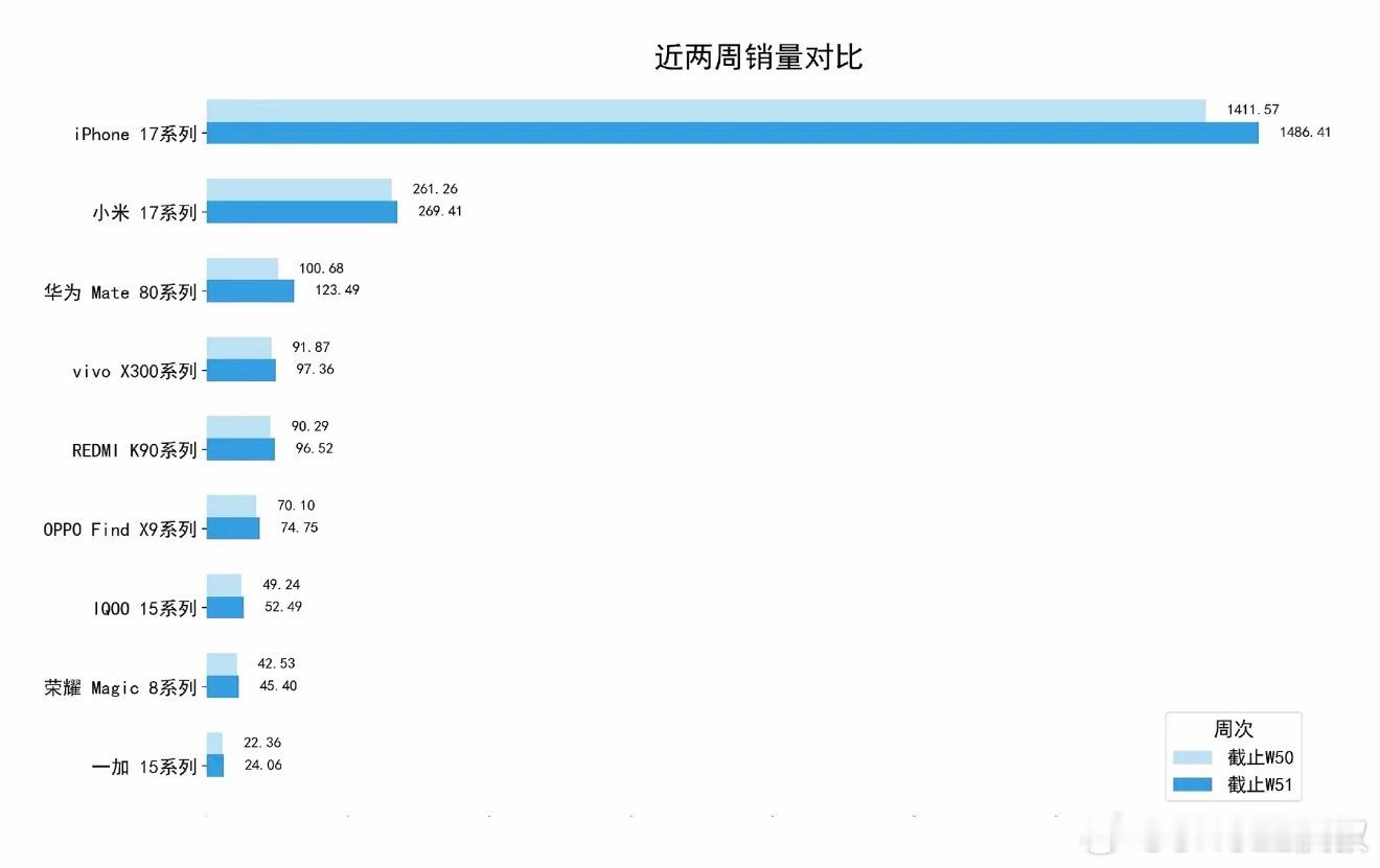 如果你不明白1500万的销量有多夸张,那可以看看这个柱子画出来的比例是这样的…iPhone17最新销量曝光