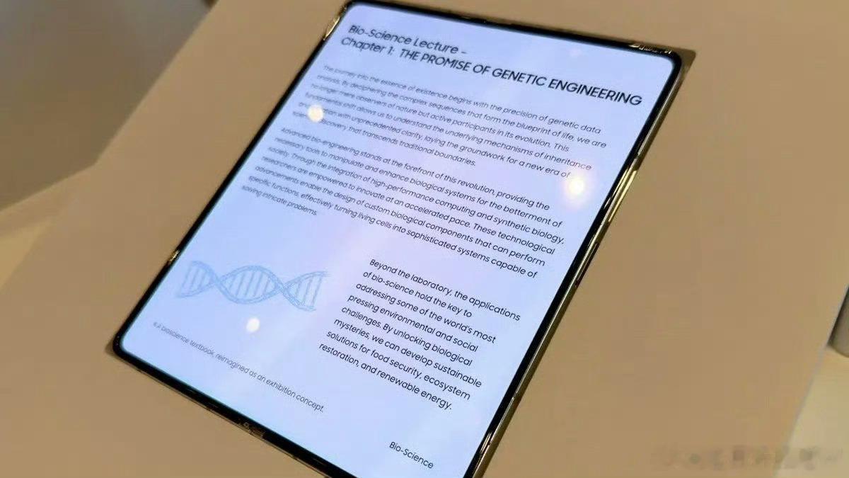 三星展示无折痕折叠屏OLED面板仔细观察了一下,中间那条线是天花板倒影,不是折痕,这大屏确实看不出折痕,看来今年很可能会发布