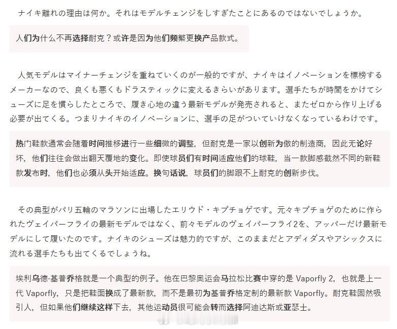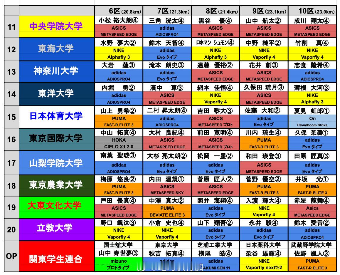 2026年第102回箱根驿传日本《文艺春秋》的跑鞋数据统计。图1与去年的数量对比图2-5每名选手选用的跑鞋型号图6-7每名区间赏选手选用的跑鞋型号图8对于耐克逐年失势的评价是,选手需要时间来适应跑鞋,而耐克更新太快了。还举了基普乔格巴黎奥运会马拉松的例子。这点希望对大众跑者有所启发吧,越是懂鞋的人越谨慎,而不是盲目追求新款。图9针对五区工藤慎作的跑鞋非市售 ASICS Metaspeed 会引起争议问题,说亚瑟士去世界田联注册了这个型号(图10我找的,希望是准确的)。箱根驿传最终成绩单 网页链接箱根驿传 跑步 第102回箱根驿传