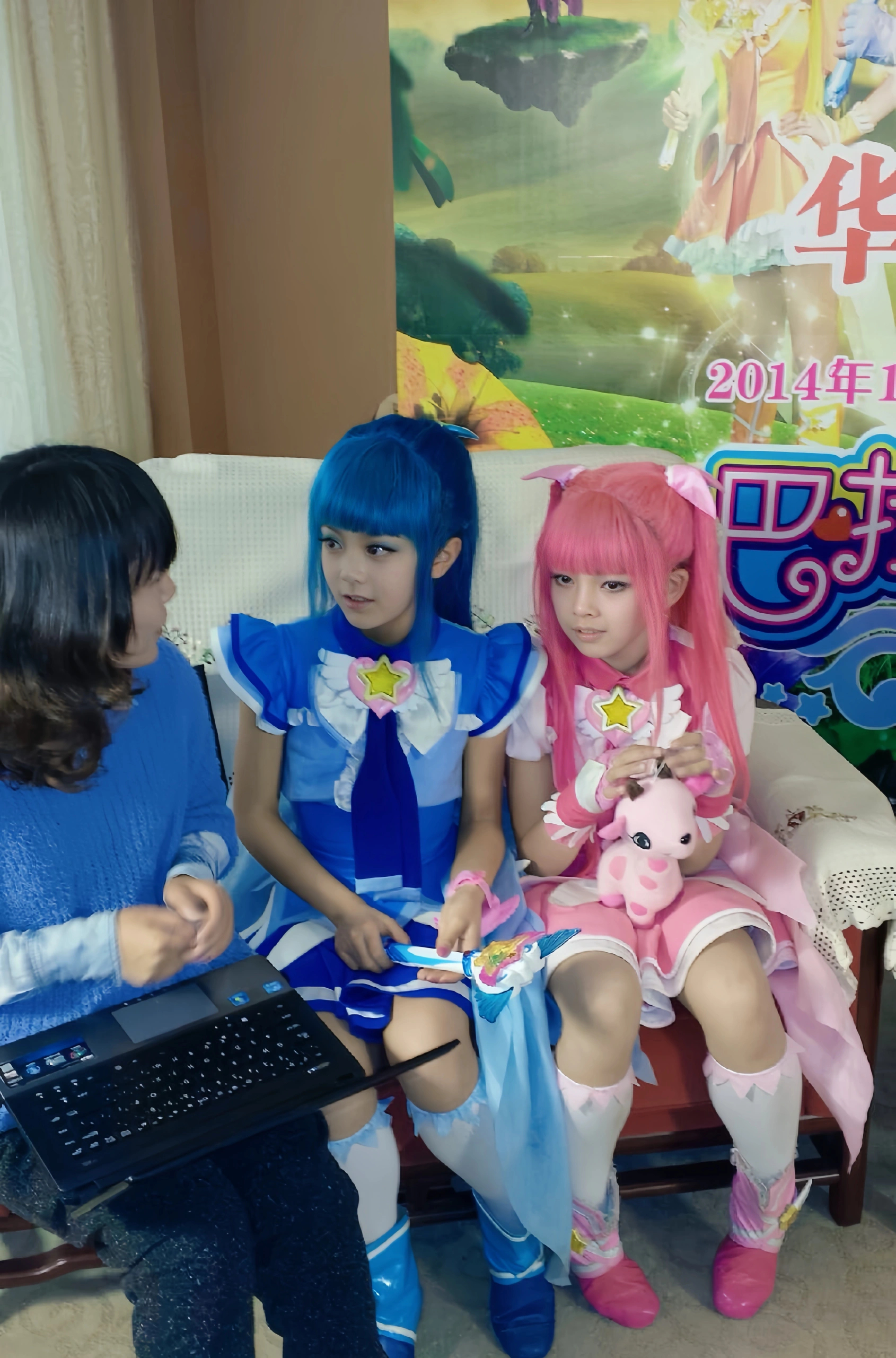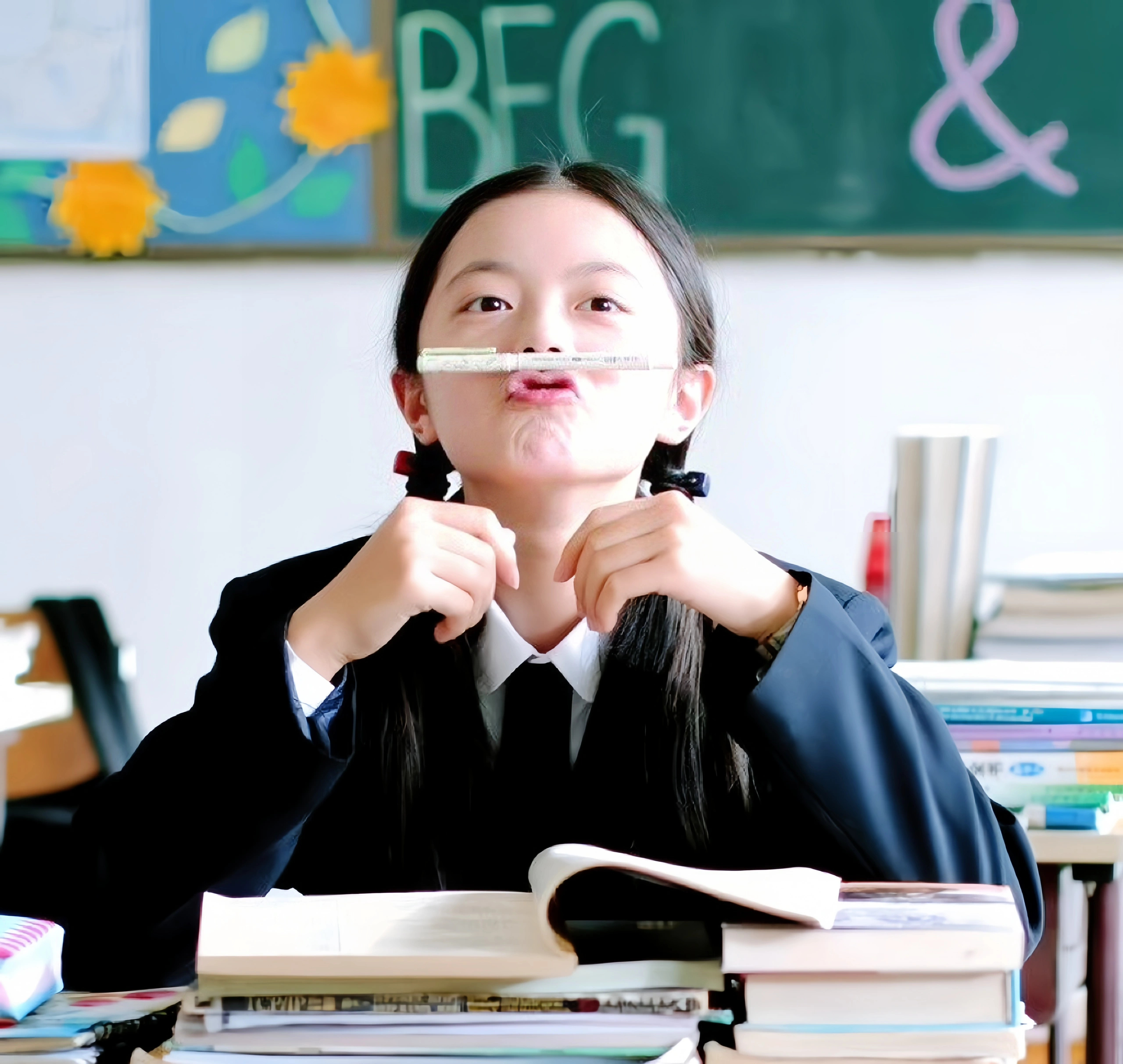 王玉雯穿中学生校服的样子。
