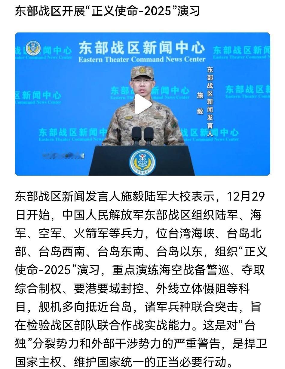 今日,此刻,东部战区发出扫独最强音(见图一、图二): 快速机动,立体布势,体系封控, 一切外来干涉触盾必亡! 一切谋独宵小遇盾即毙! 正义之盾,破限除妄!!! 那些妄图支援、武装台独的,不管你是运输机、战斗机还是无人机、预警机、反潜机,结局只有两个:要么返程,要么坠海; 不管你是运兵船、运油船还是常规潜艇、核潜艇,结局只有两个:要么掉头,要么沉海! 老美、老赖、小日子们,看懂了吗?