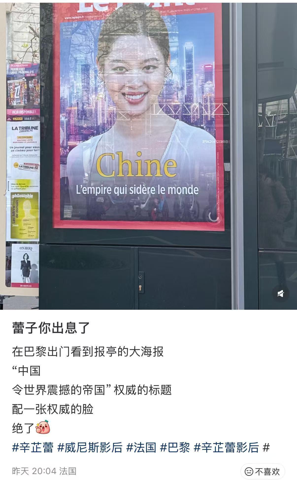 辛芷蕾 巴黎下雪最大赢家辛芷蕾在继章子怡、周迅、张曼玉之后,第四位登上法国时政杂志Le Point的华语演员,该杂志在整个法语区投放长达半个月,威尼斯影后辛芷蕾🔥🔥
