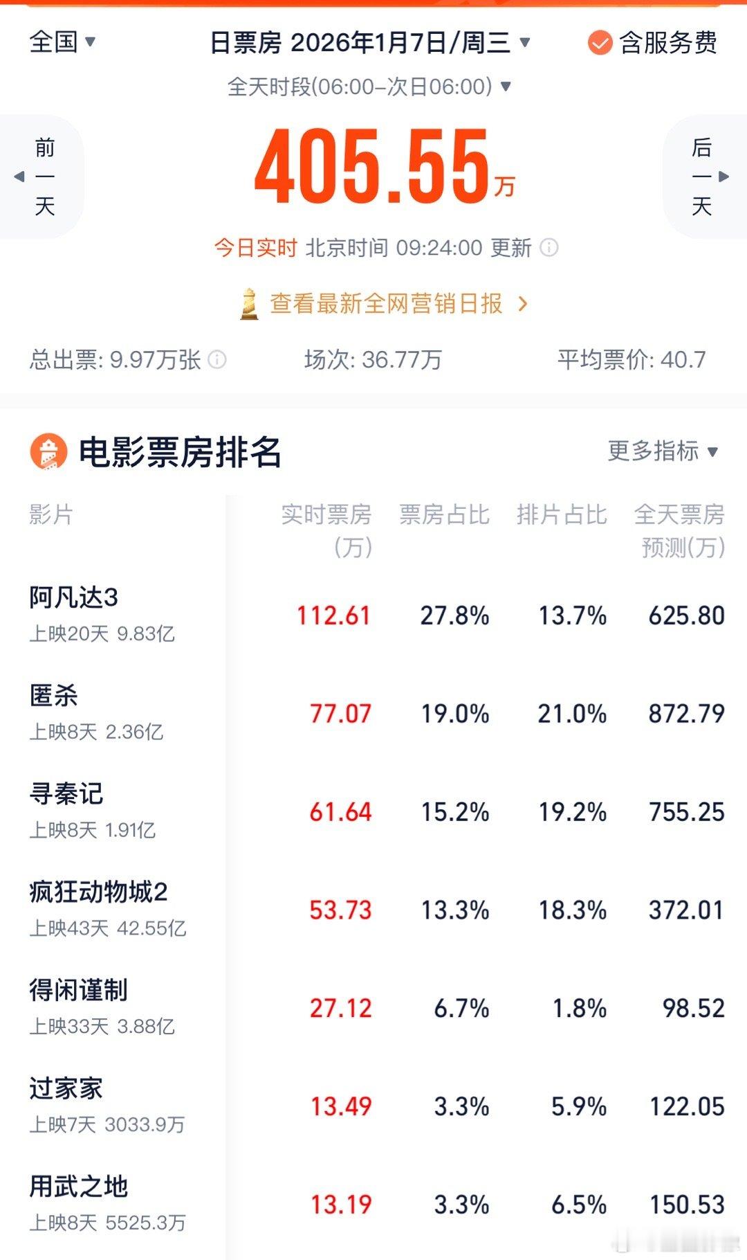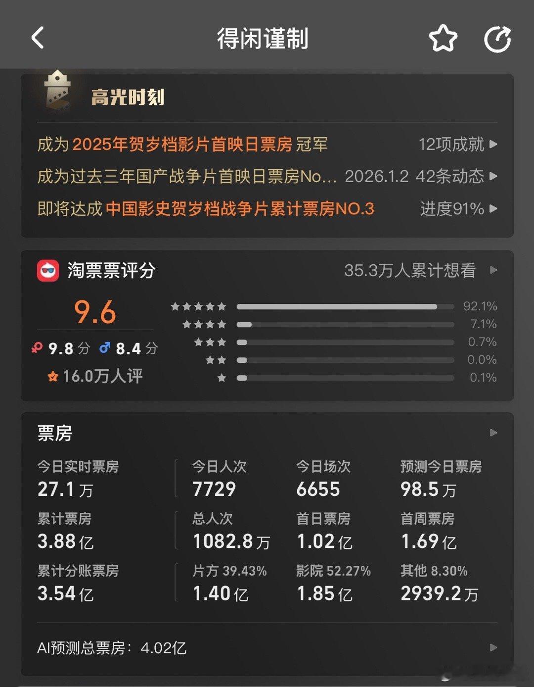 得闲谨制得闲谨制猫塔预测都来到了4亿,票房占比最近没什么排片了还是很优秀。