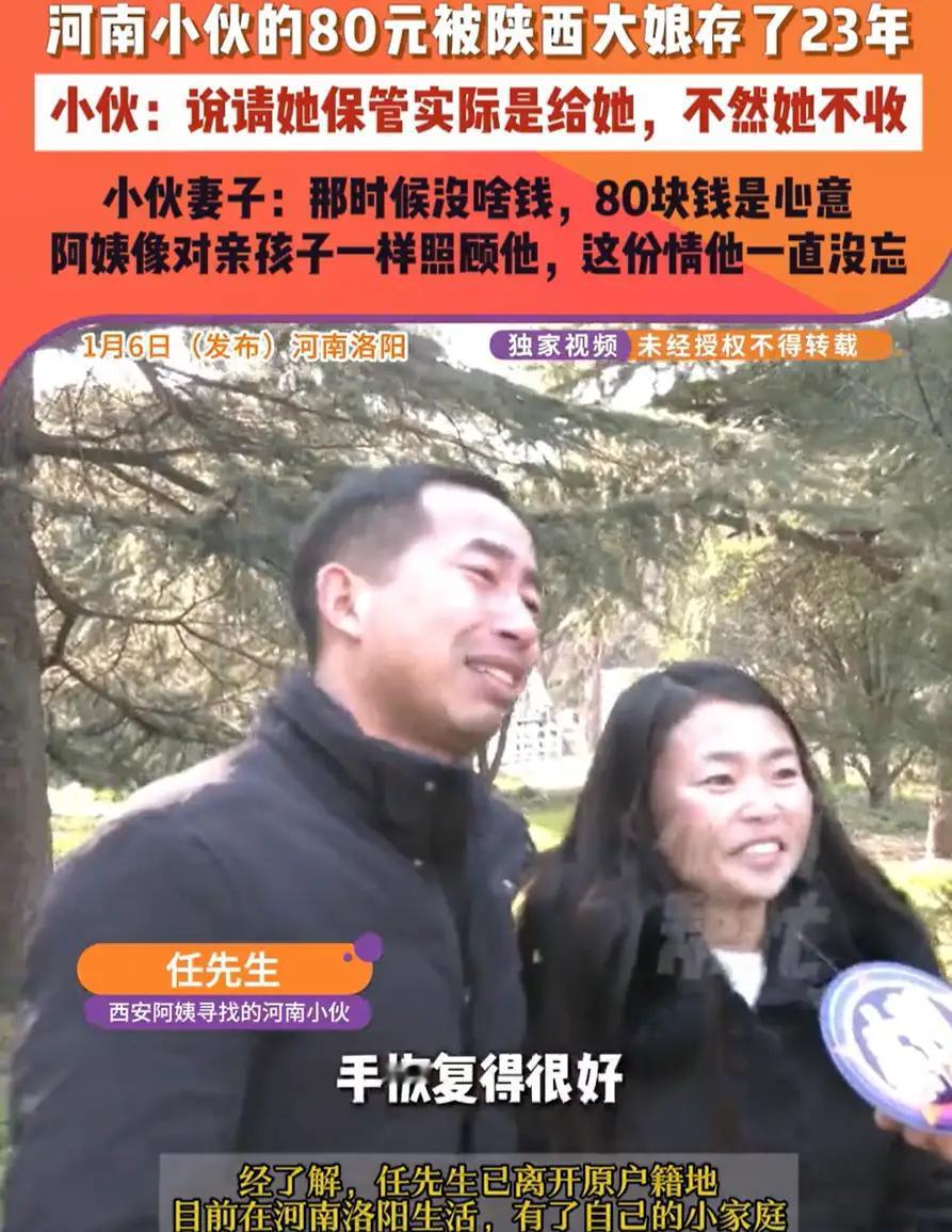 看哭了!陕西西安,大妈在23年前摆摊时认识了一名小伙,见对方没了父亲不容易,就像亲妈一样照顾她,小伙离开前,把身上所有积蓄80块钱给大妈“保管”,没想到,这么多年过去了,大妈却全网找人,还想着把钱归还,而两人再相见时,小伙直接喊了对方一声“妈!” 那时候的的西安街头,充满了为了生计奔波的外乡人。杨大娘那时候身子骨还硬朗,守着街边摊卖点吃食。也就是在那会儿,她的摊子前来了一个特殊的常客。一个才十几岁的愣头青,推着个跟他身形不怎么相称的三轮车,操着口河南口音,也是来这城市里讨生活的。 一来二去,大娘就咂摸出了这孩子的不容易。家里没了顶梁柱父亲,老家还有个身体病怏怏的娘,一个还没长开的半大孩子,硬是咬着牙从开封跑到西安,想给那个摇摇欲坠的家撑起一片天。 那时候也没什么微信电话,人与人的帮衬全在眼目前儿这些事上。 杨大娘那是打心眼里心疼这孩子,看着他天天起早贪黑,还要忍着少年人易饿的肚子省钱,她心里过意不去。也不是什么惊天动地的大恩,就是顺手多盛的一勺饭,特意留下的热乎菜,或者是看着孩子衣服脏了没人管,叫过来帮着洗洗缝缝。 日子就这么流水似的过,在那孩子心里,这个每天在此守候的摊主,早就不是一般的商贩了。 直到有一天收摊的时候,变故来了。这小伙子突然显得有些郑重,从怀里掏出了这八十块钱。那时候的八十块,对于一个流浪打拼的少年来说,几乎就是全部的身家。他死活要把这钱塞给杨大娘,嘴里说的是:“大娘,您帮我保管着,我以后来取。” 杨大娘信了。她觉得这是孩子的血汗钱,放不住,怕丢怕乱花,既然孩子信得过自己,这便是天大的托付。她小心翼翼地把钱收好,就等着那个推三轮车的少年哪天再出现在街角,笑着找她要把这笔“存款”取回去。 可谁也没想到,这一别,就是杳无音信。后来大娘才打听到一些零碎的消息,说是那孩子在外头打工受了手伤,情况挺急,被同乡火急火燎地接回河南老家养伤去了。 这一走,人就如同断了线的风筝,彻底失联了。那时候没有智能手机,没有社交网络,除了知道他姓任,家在开封,别的什么线索都没有。 这一晃,就是整整二十三年。这二十三年里,杨大娘的头发由黑转白,背也慢慢驼了。那八十块钱始终压在她柜底最深处,从来没被挪用过一分一毫。 每每翻出来看到这些旧钞票,她心里就揪着慌:当年的那个孩子,手养好了吗?现在过得怎么样?成家立业了吗? 越老越爱想前尘往事,越老越觉得这笔“别人的钱”是个心病。这哪里是钱,分明是一个还没兑现的承诺。 终于,在女儿的支持下,老人家下定决心,无论如何得把这人找到,把这钱给人退回去,哪怕只有八十块,也得有个交代。这事儿经媒体一报道,在这个互联网通达的时代,很快就炸开了锅。全网的热心人都在帮着这个西安大妈找当年的河南小伙。 这一次,时间没再跟他们开玩笑,没过几天,好消息就来了。视频连通的那一刻,屏幕那头的男人已经是四十岁的中年人了。岁月在他脸上留下了痕迹,但他早已成家,还是三个孩子的父亲。虽然容貌变了,可当看到屏幕里那个满头银发的杨大娘时,记忆瞬间就重叠了。 大娘也没认生,一眼就看出这就是当年那个让她心疼的后生。直到这一刻,当年那个“保管”的谜底才终于被揭开。视频那头,已经是中年汉子的任先生眼圈一下子红了,几度哽咽。他说出了当年没好意思说的实话:那八十块钱,根本就不是什么“保管”,那就是他真心实意想留给大娘的。 当年他要离开,受了大娘那么多如母般的照料,不知道该怎么报答,又怕直接给钱大娘肯定不收,甚至会责怪他乱花钱,这才编了个“帮忙保管”的拙劣借口。他想的是,这钱就留给大妈贴补家用,是他作为“儿子”的一点心意。 没想到,一句善意的谎言,竟然让一位老人为此坚守承诺了二十三年。这一头是二十三年为了这笔钱日夜悬心的诚信,那一头是怕老人不收钱而编造借口的感恩。隔着屏幕,四十岁的任先生再也控制不住情绪,冲着视频里的老人,喊出了那声压在心底二十三年的“妈”。 这一声“妈”,喊得顺畅自然,没有任何滞涩。杨大娘在这头,听得也是泪眼婆娑,像当年招呼那个推三轮的少年一样,只说了一句:“儿子,回家吧,我们全家都等着你。” 钱其实早就已经不重要了。这八十块钱,在这个故事里,不过是善意流转的一个介质。在漫长的二十三年时光隧道里,没有血缘关系的两个人,一个用“保管”守护诚信,一个用“保管”掩饰报恩。这种没有任何功利的双向奔赴,在这个喧嚣的世界里,显得格外安静,却又震耳欲聋。