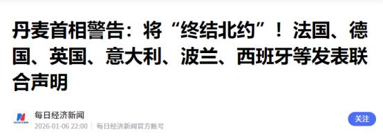 丹麦首相警告:将“终结北约”!法国、德国、英国、意大利、波兰、西班牙等发表联合声明 “要是美国敢动格陵兰岛一根手指头,北约这七十多年的摊子就彻底散了!” 当地时间 5 日,丹麦首相弗雷泽里克森在电视采访里的话掷地有声。 把全世界的目光都拽到了北极圈那块冰天雪地里。这位女首相盯着镜头强调:“别以为特朗普说想要格陵兰是开玩笑,这事儿必须当真!” 谁也没料到,2026 年初的国际大戏会从这么个冷门角落炸开。就在丹麦首相放话前一天,白宫办公厅副主任米勒还在嚣张放话:“格陵兰岛就该是美国的,真要抢没人敢拦着。” 而特朗普本人更早就把这话当口头禅,从 2025 年初就喊着 “必须拿下格陵兰”,一会儿威胁加征丹麦关税,一会儿放风 “不排除动武”,最近干脆任命了专门的 “格陵兰特使”,一副志在必得的架势。 这格陵兰岛到底是块什么宝贝,能让美国当家人这么魂不守舍?说出来你可能不信,这地方比新疆还大两倍多,84% 的面积全是冰盖,全年平均气温零下几十度,常住人口才 5 万多。 但架不住它位置太关键 —— 正卡在北美和欧洲的咽喉上,北极航道要是开通,这里就是必经之路,美军在岛上的皮图菲克太空基地,能直接盯着俄罗斯的导弹动向。 更重要的是资源,已探明的稀土就有 150 万吨,还有 175 亿桶石油,这些全是芯片制造、能源转型的刚需,特朗普想重振美国制造业,眼馋这块肥肉也不奇怪。 可美国忘了,格陵兰是丹麦的自治领地,虽说 2009 年就实现了充分自治,但外交和防务还攥在丹麦手里,而丹麦可是北约的 founding member(创始成员国)。北约第五条集体防御条款写得明明白白:“攻击一个成员国就是攻击全体”。 现在美国反倒要对盟友的地盘动手,这不是往北约脸上扇耳光吗?弗雷泽里克森的警告压根不是吓唬人,要是盟主带头欺负盟友,这军事同盟还有存在的意义? 特朗普的霸道没等来丹麦屈服,倒先炸了欧洲的锅。6 日当天,法国、德国、英国、意大利、波兰、西班牙六国领导人就跟丹麦抱团发声,联合声明里把话挑得明明白白:“格陵兰是格陵兰人的,轮不到外人指手画脚”,还特意强调北极安全得靠北约框架,不能搞霸权那套。 北欧五国随后也跟上,连加拿大总理都插话说 “尊重格陵兰的选择”。这架势很清楚:欧洲不打算惯着美国的脾气了。 美国见硬的不行开始玩阴的,驻格陵兰特使当天就放话 “支持格陵兰独立”。这招够损,想挑拨格陵兰和丹麦的关系,趁机浑水摸鱼。 可格陵兰自治政府总理尼尔森也不含糊,直接表态 “做好了应对一切的准备”,潜台词就是 “别想挑拨我们”。之前美国还派了几个亲信多次往返格陵兰,想收买当地政客搞渗透,现在看来这些小动作全打了水漂。 这事儿往深了想,根本不是一块岛的问题,是美国霸权和欧洲自主的正面碰撞。中国人民大学的刁大明教授说得透彻:美国这是典型的 “极限施压”,刚在委内瑞拉秀完肌肉,又来北极挑事,就是想试探欧洲到底敢不敢反抗。 可北约早就不是当年那个铁板一块了,之前乌克兰想加入北约,美国和欧洲就吵得不可开交,现在美国直接动盟友的奶酪,裂痕只会更大。英国皇家三军研究所的研究员都直言,这是北约 “关乎存亡” 的挑战。 我倒觉得,这事儿把美国的 “掠夺性外交” 扒得干干净净。从 1946 年杜鲁门政府就想花 1 亿美元买格陵兰,被拒了七十多年还不死心,现在居然想用军事威胁抢,这跟强盗有啥区别? 更可笑的是,美国一边喊着 “维护国际安全”,一边践踏《联合国宪章》的主权原则,这种双重标准,欧洲国家早就看够了。 现在的局势就像个火药桶,特朗普要是真敢往前闯,北约大概率要分裂;可要是就此收手,美国在欧洲的威信又要跌到底。 最尴尬的是那些中间派国家,跟着美国得罪欧洲,还是跟着欧洲忤逆美国?而格陵兰岛这块冰原上,美军的基地还在运转,欧洲的巡逻机也开始增加活动,北极的冬天还没过去,地缘博弈的温度倒先烧起来了。 说句实在的,北约这七十多年的架子,全靠 “共同敌人” 撑着,冷战时靠苏联,后来靠俄罗斯。现在美国自己成了欧洲的 “威胁源”,这架子自然就晃得厉害。 弗雷泽里克森的 “终结北约” 警告,更像是给欧洲国家提了个醒:靠别人保护不如自己硬气。接下来就看特朗普会不会认怂,要是真狗急跳墙搞挑衅,那北约的散场戏,恐怕真要开场了。