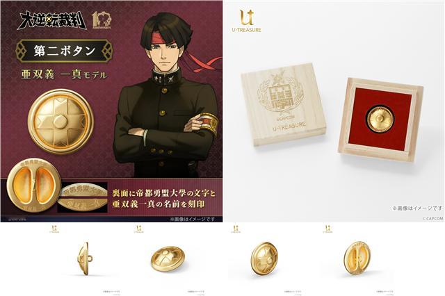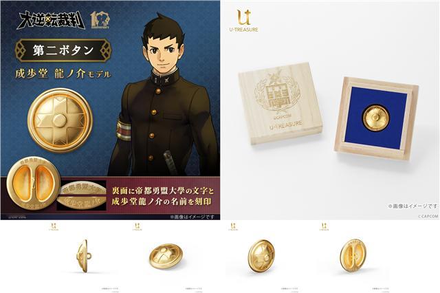 【1080元!《大逆转裁判》“第二颗纽扣”周边开订】为纪念《大逆转裁判》系列十周年,珠宝品牌U-Treasure宣布将推出以成步堂龙之介和亚双义一真就读的帝都勇盟大学为主题的“第二颗纽扣”周边商品。“第二颗纽扣”源于日本校园文化,当女生在毕业典礼向男生索取校服上的第二颗纽扣时,代表着她喜欢对方。如果男生愿意交出他的纽扣,即代表愿意正式交往。该纽扣采取镀金工艺,背面镌刻有“帝都勇盟大学”以及成步堂或亚双义的名字。纽扣将包装在特制的桐木盒中,单个商品售价为24,200日元(约1080元)。现已在U-Treasure官网开启预购,计划于6月下旬陆续发货。大逆转裁判