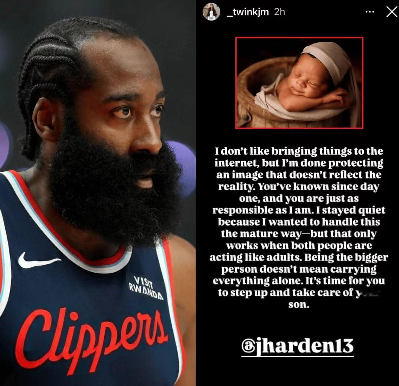 快船队的后场核心詹姆斯-哈登很可能又摊上事了。 据媒体报道称一位叫做twinkjm的女子在社交媒体上喊话哈登,大致的内容为: “我并不喜欢将什么事都放在网上,但已经无力去维护一个和现实中截然不同的形象。 不过从事情发生第一天哈登就应该明白,这是需要两人一起负责的事情。之前一直沉默,只是想要用更成熟的方式来处理事情,不过这样的前提,需要我们都像个成年人一样。 所以成为“更成熟理智”的人,可不是需要一个人承担这一切,所以现在,是你该挺身而出,照顾你儿子的时候了。” 对此,目前詹姆斯-哈登方面还没有给出公开回应!
